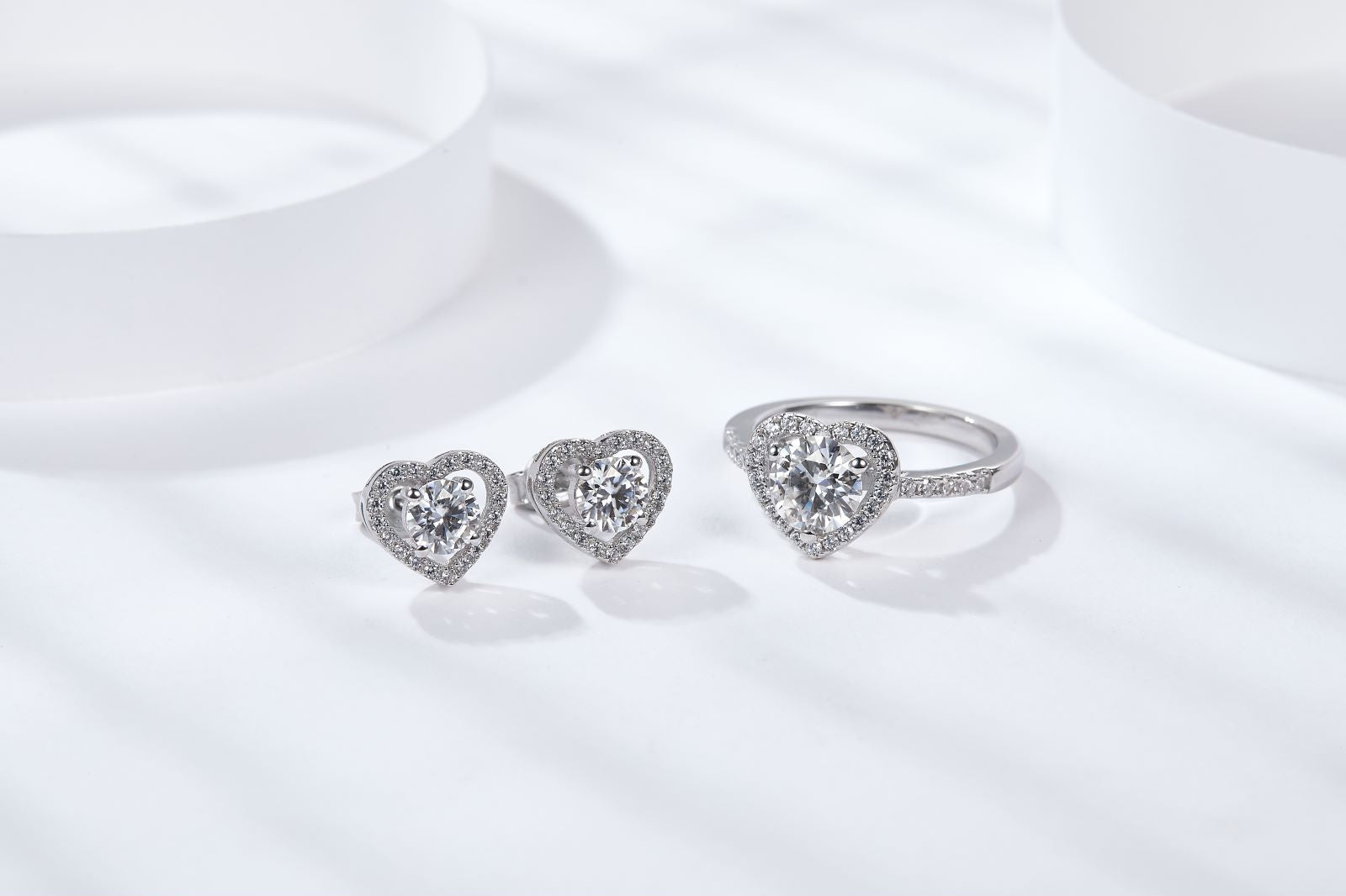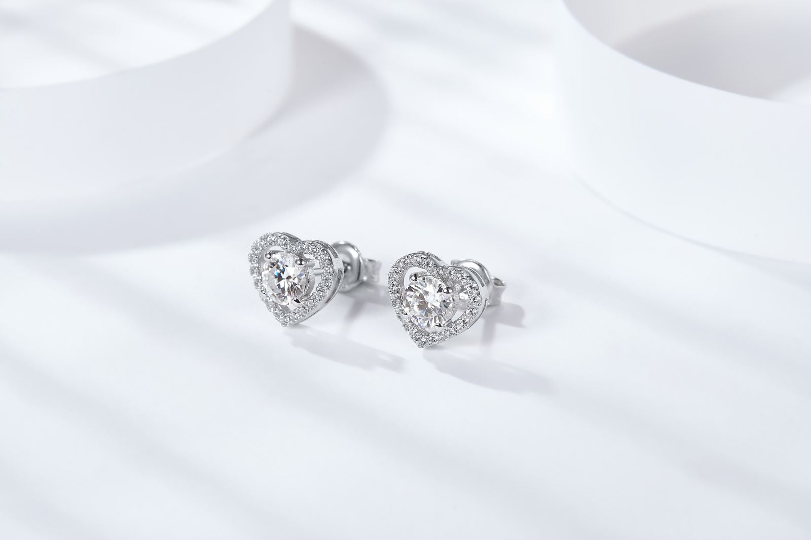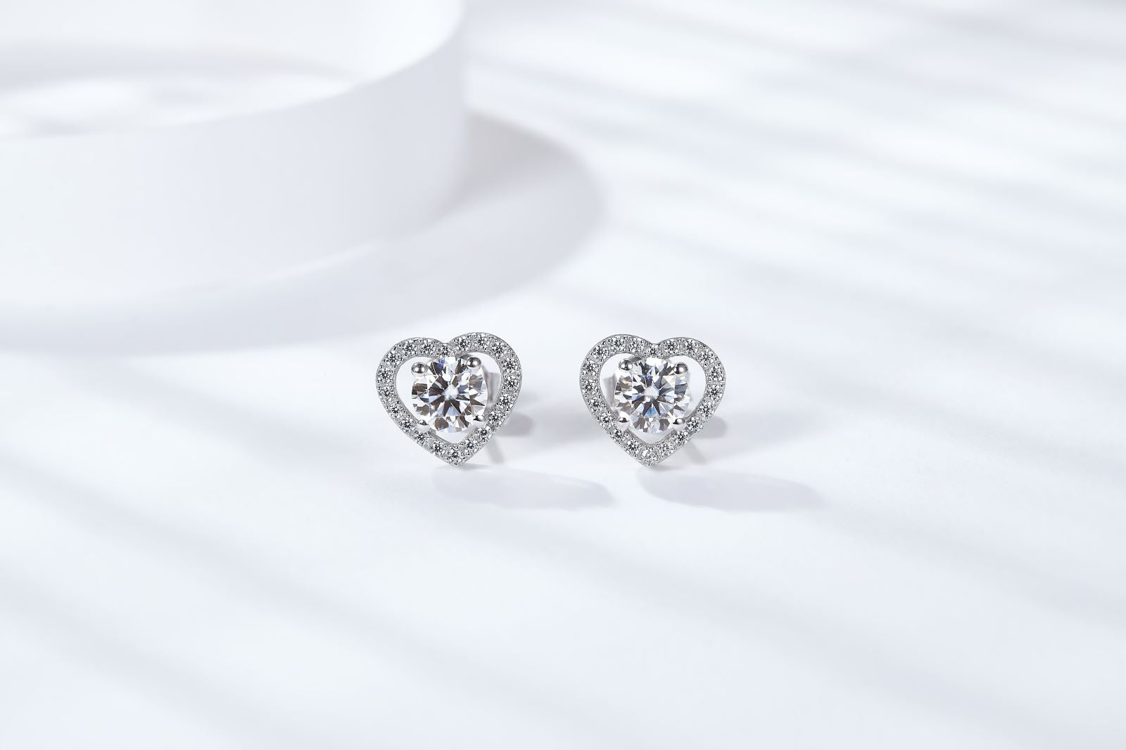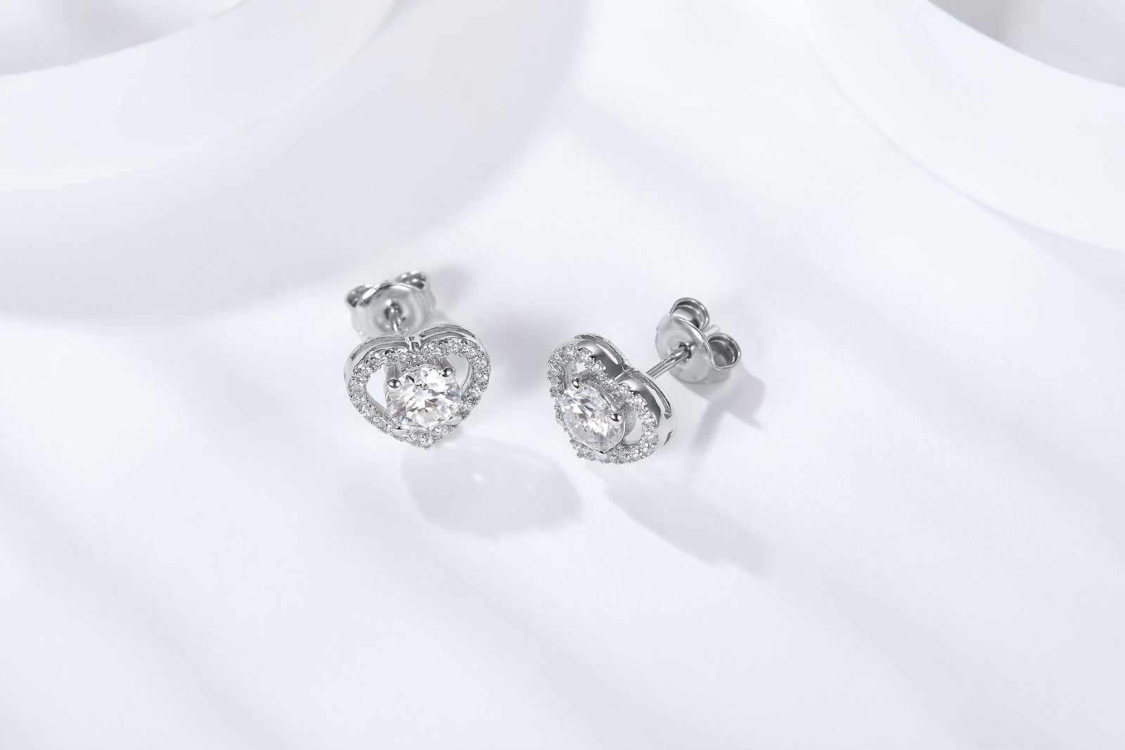 IE0030 4MM HEART SHAPE MOISSANITE DIAMOND STUD EARRINGS IN STERLING SILVER