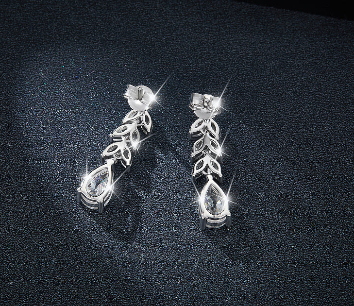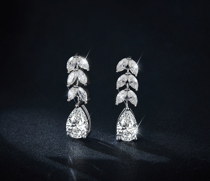Indulge in sophistication with our IE0066 Pear Cut Moissanite Diamond Dangle Drop Earrings. Crafted in sterling silver, these earrings showcase pear-cut moissanite diamonds, exuding timeless elegance and brilliance. Elevate any ensemble with their captivating sparkle and graceful design. An exquisite addition to your jewelry collection. 💍✨