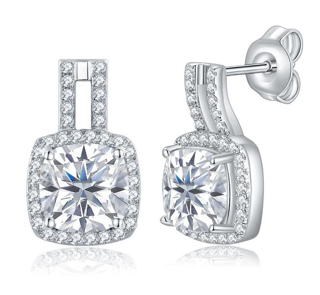 IE0076 4.15CT CUSHION STUD MOISSANITE EARRINGS IN STERLING SILVER