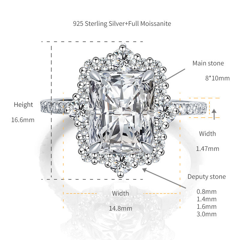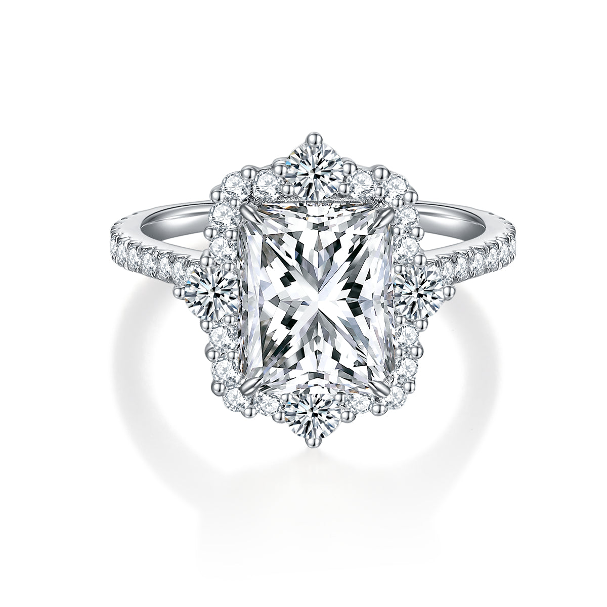 IE0157 RADIANT CUT MOISSANITE ENGANGEMENT RING IN STERLING SILVER