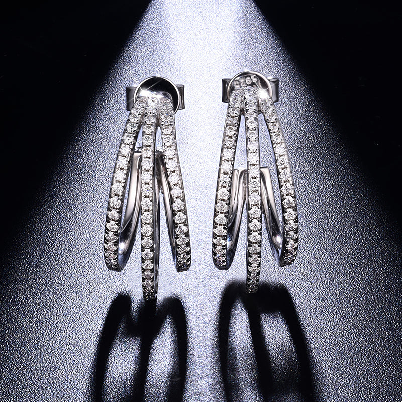 IE0178 FRENCH MOISSANITE DIAMOND HOOP EARRINGS IN STERLING SILVER