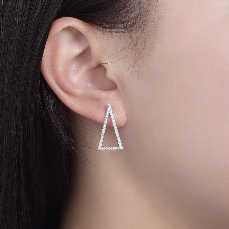 Introducing our IE0196 Moissanite Triangle Hoop Earrings in Sterling Silver, featuring a total of 0.22 carats of dazzling moissanite stones. These earrings redefine elegance with their sleek triangle design, meticulously crafted in sterling silver. Perfect for the modern woman who values both style and sophistication, they add a touch of luxury to any outfit. Ideal for those who seek timeless beauty and impeccable craftsmanship in their jewelry collection. ✨💎