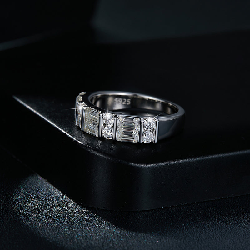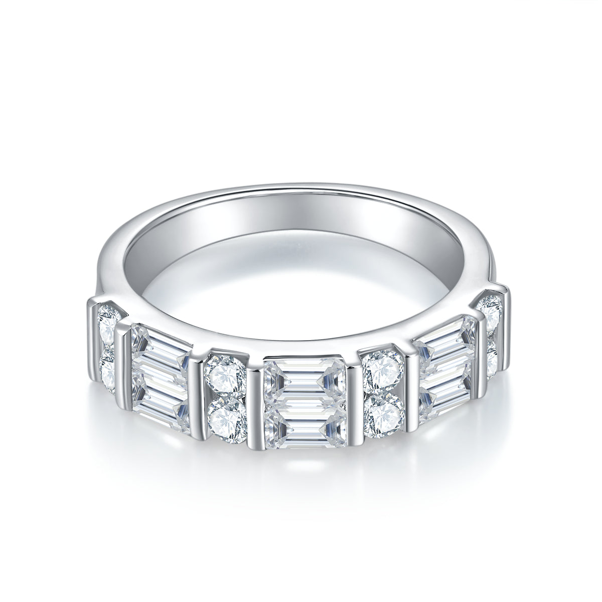 IE0231 ROUND BAGUETTE MOISSANITE DIAMOND RING IN STERLING SILVER