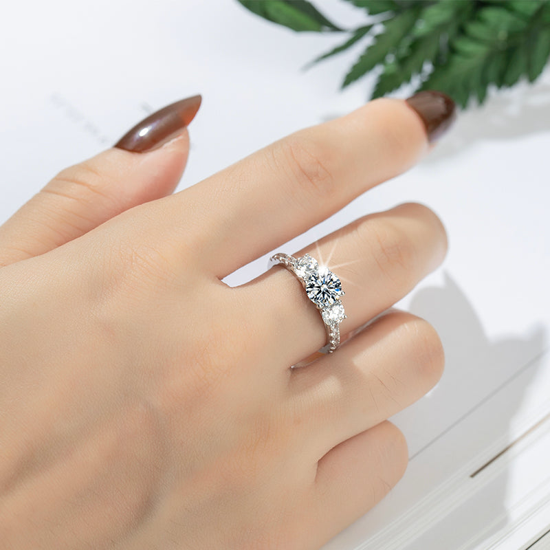 IE03171 ROUND BRILLIANT CUT 6.5MM MOISSANITE DIAMOND RING IN STERLING SILVER