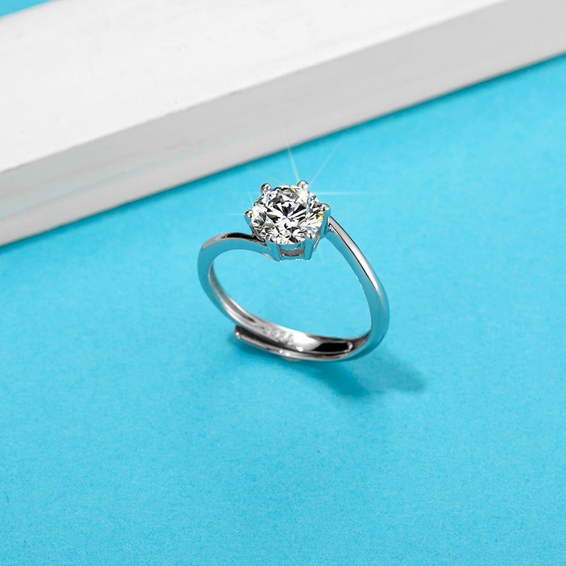 IE04951 1CT ROUND CUT MOISSANITE ENGAGEMENT RING IN STERLING SILVER