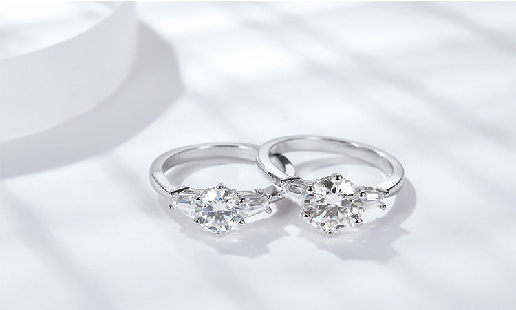 IE1028 1CT OR 2CT ROUND BAGUETTE MOISSANITE RING IN STERLING SILVER