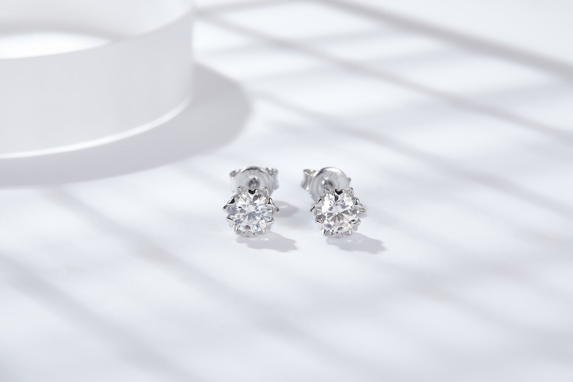 IE4002 SNOWFLAKE MOISSANITE STUD EARRINGS IN STERLING SILVER