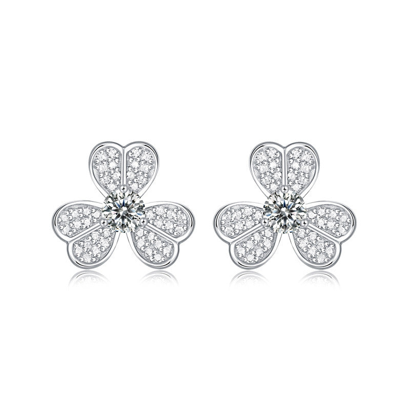 IE4027 FLOWER CLASSIC MOISSANITE STUD EARRINGS IN STERLING SILVER
