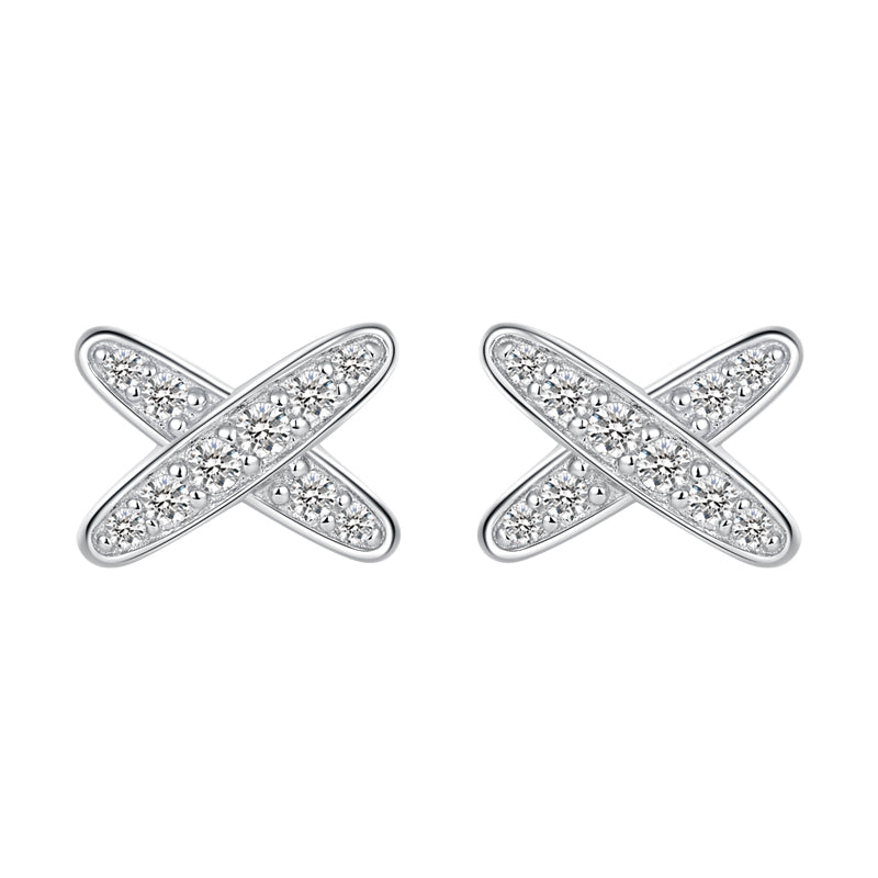 IE4030 X SHAPED MOISSANITE DIAMOND STUD EARRINGS IN STERLING SILVER
