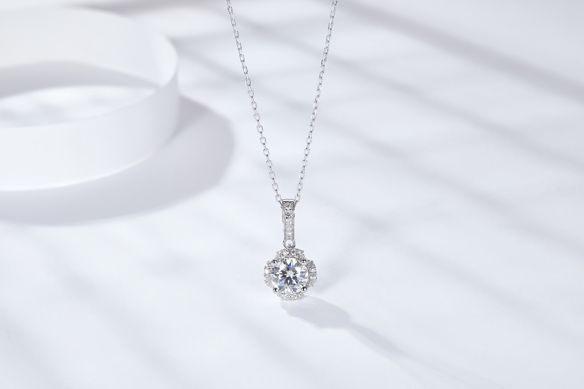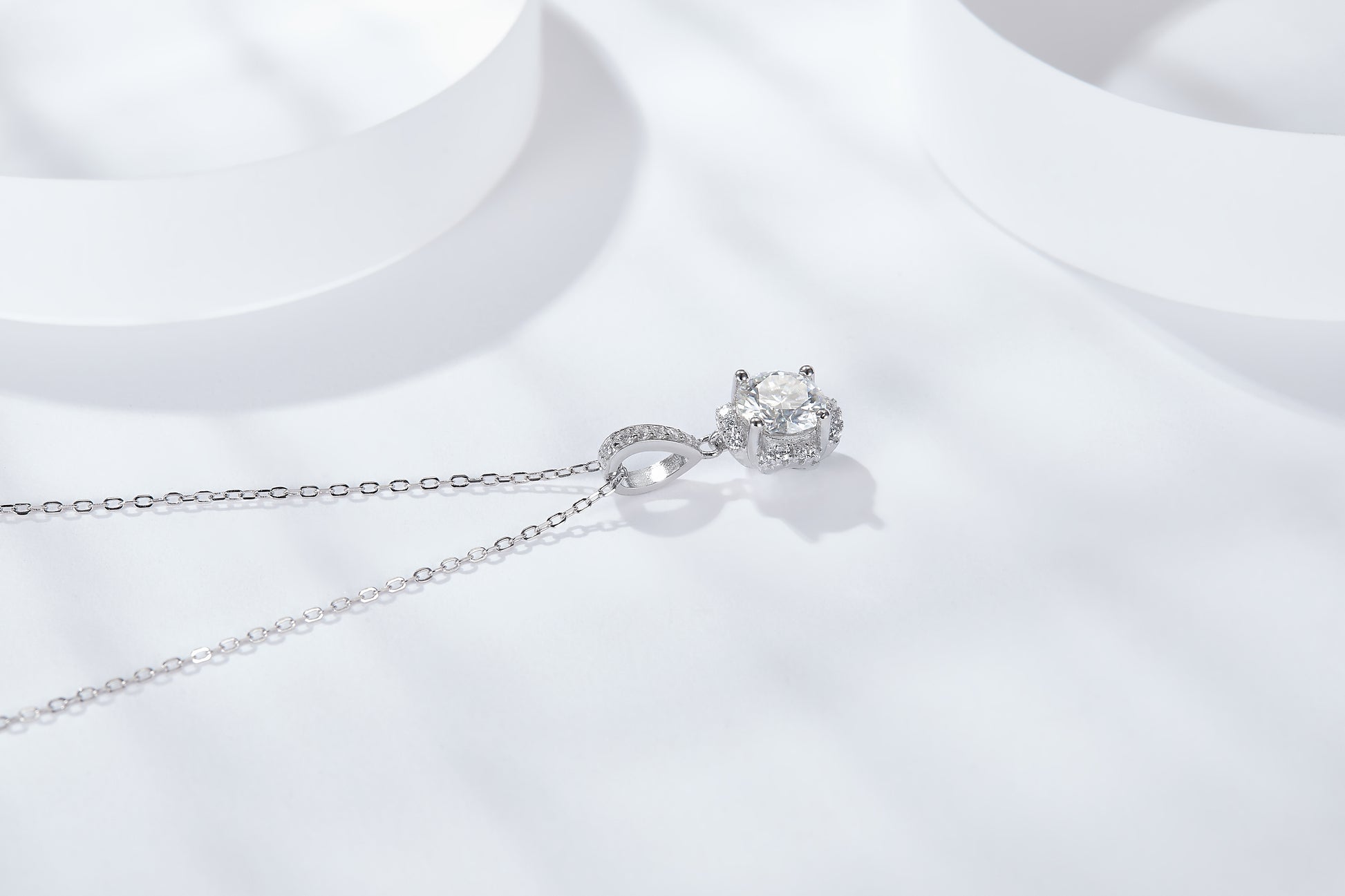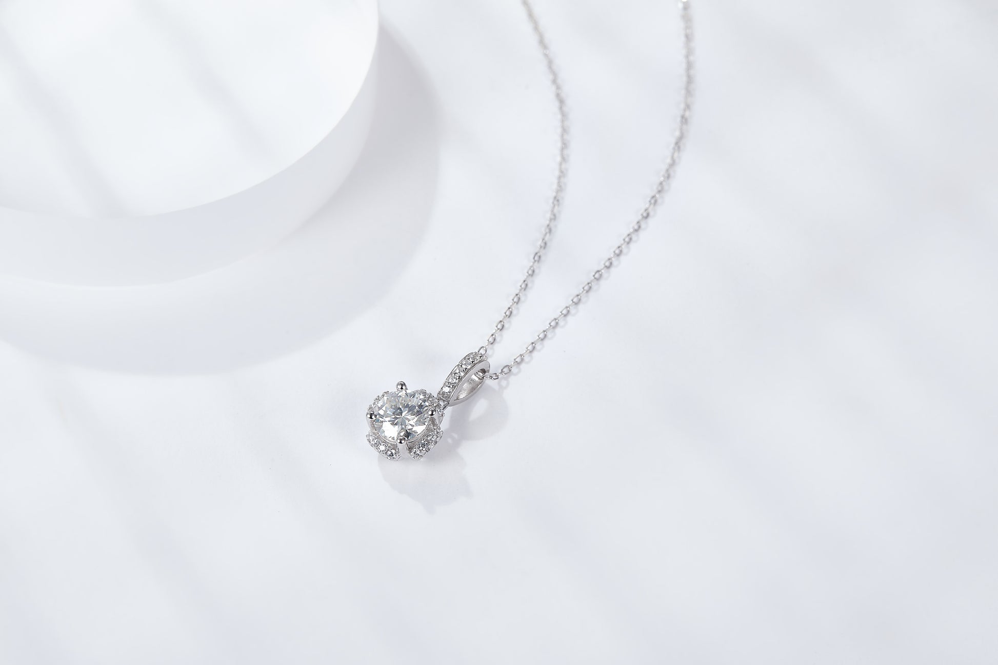 Introducing the IE5023 1CT Moissanite Diamond Jade Flower Pendant Necklace in Sterling Silver. Elevate your style with this exquisite necklace featuring a brilliant 1-carat moissanite diamond encased in sterling silver. Perfect for adding a touch of elegance and sparkle to any outfit, whether for everyday wear or special occasions. Ideal for those who appreciate sophisticated simplicity and timeless beauty. Enhance your jewelry collection with this stunning accessory that effortlessly combines luxury and craftsmanship. 💎