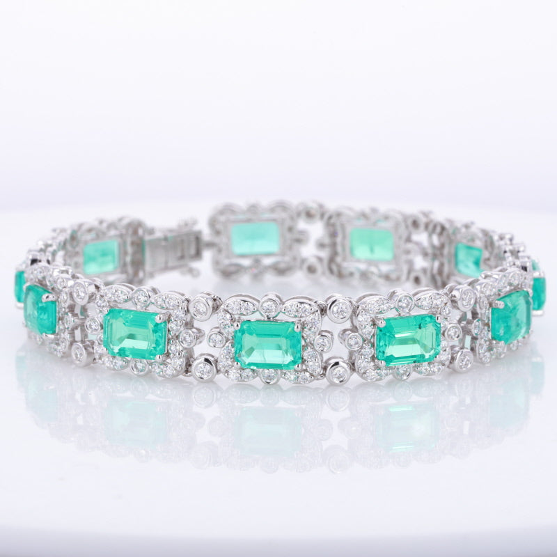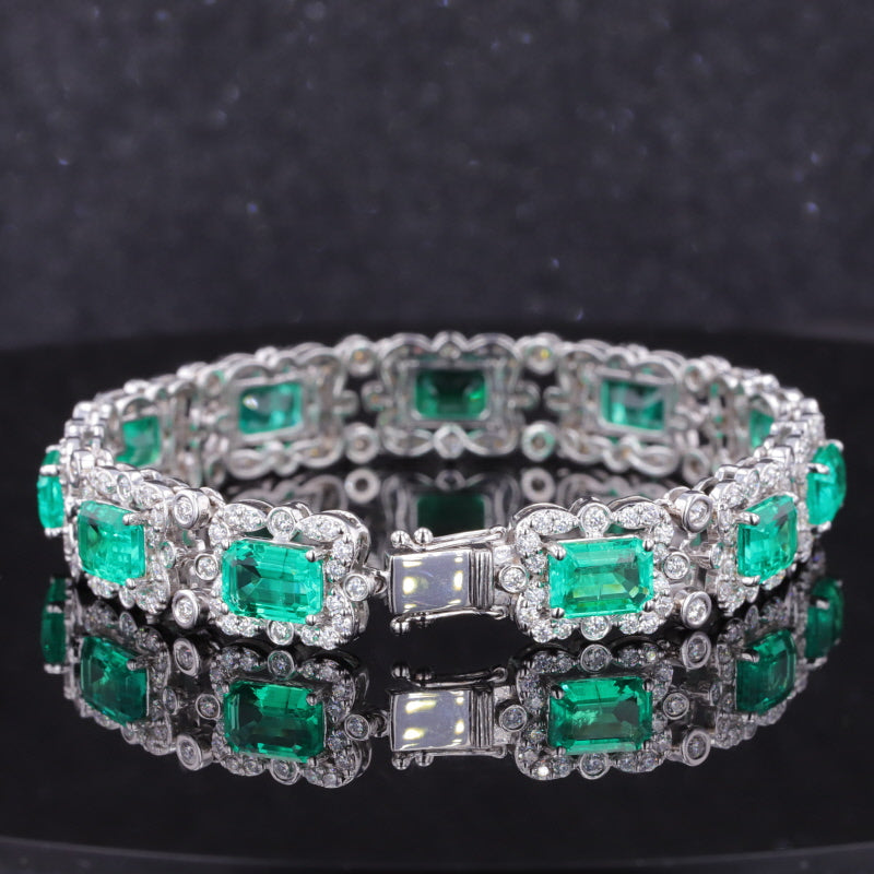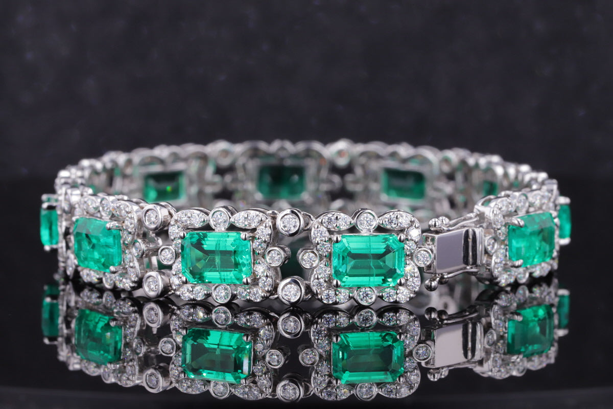 LAB GROWN EMERALD WITH MOISSANITE DIAMOND BRACELET IN 18K WHITE GOLD
