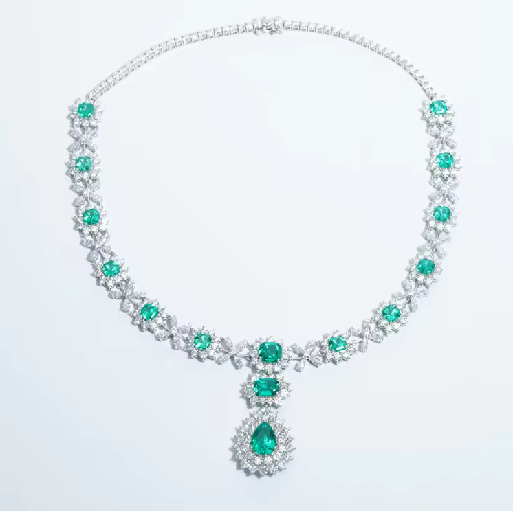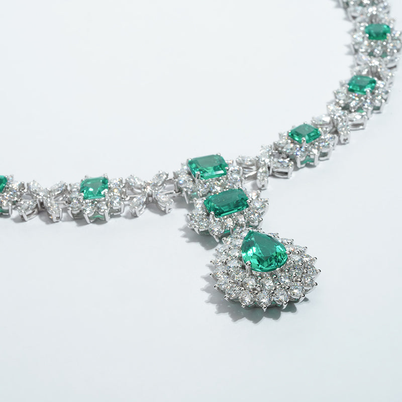 LAB GROWN GREEN EMERALD GEMSTONE AND MOISSANITE DIAMOND NECKLACE IN 14K GOLD