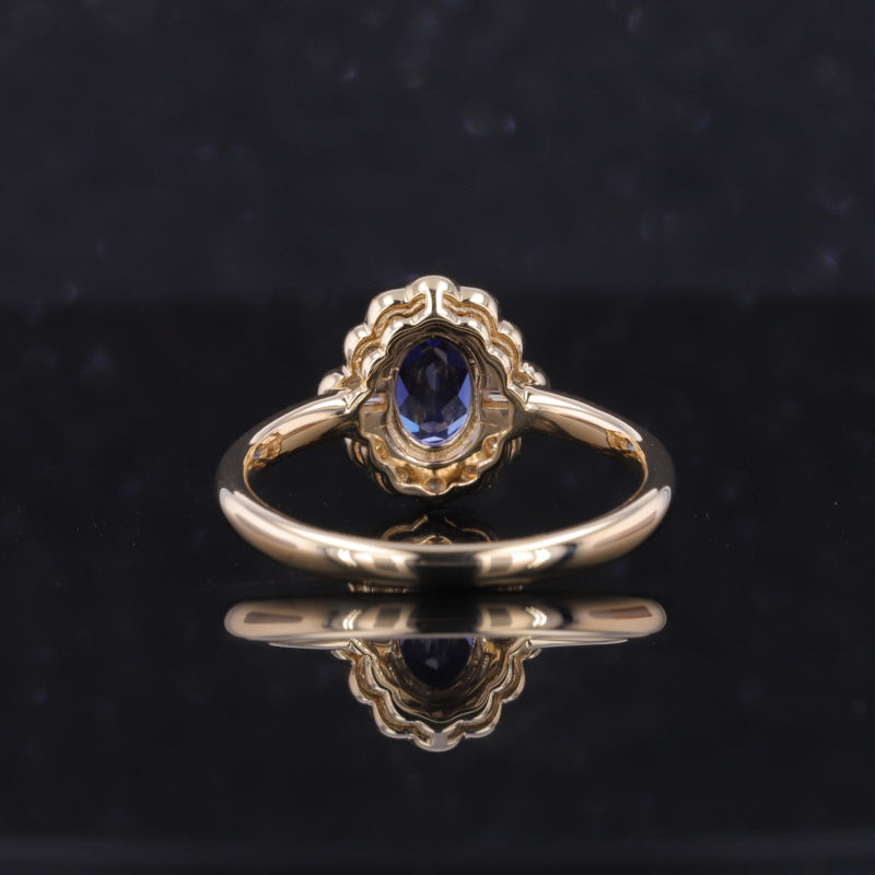 LAB GROWN SAPPHIRE WITH MOISSANITE HALO RING IN 9K/10K/14K/18K SOLID GOLD