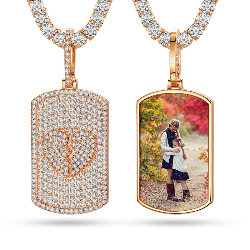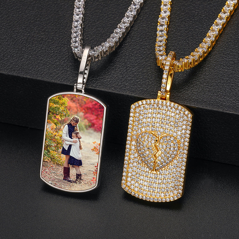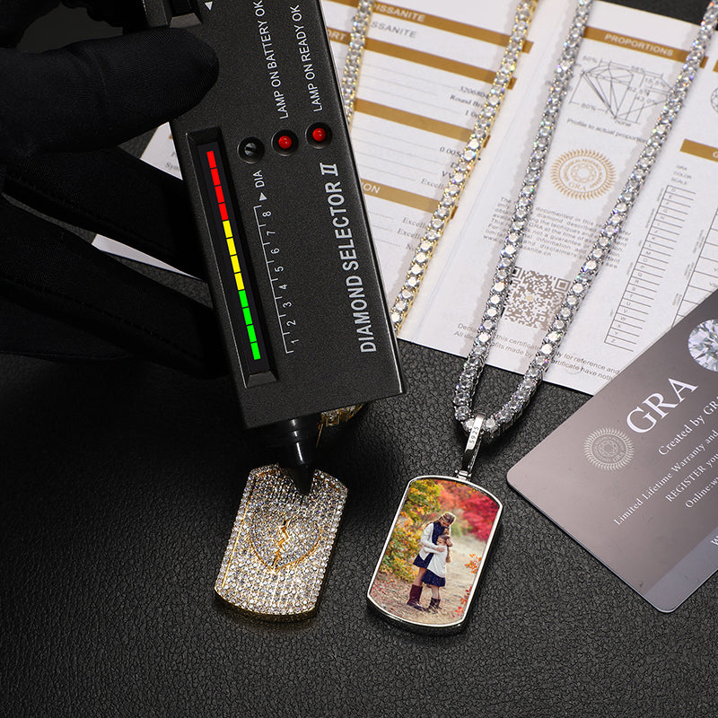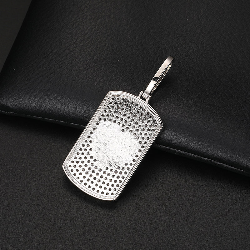 MOISSAANITE MILITARY CARD PHOTO PENDANT NECKLACE IN STERLING SILVER