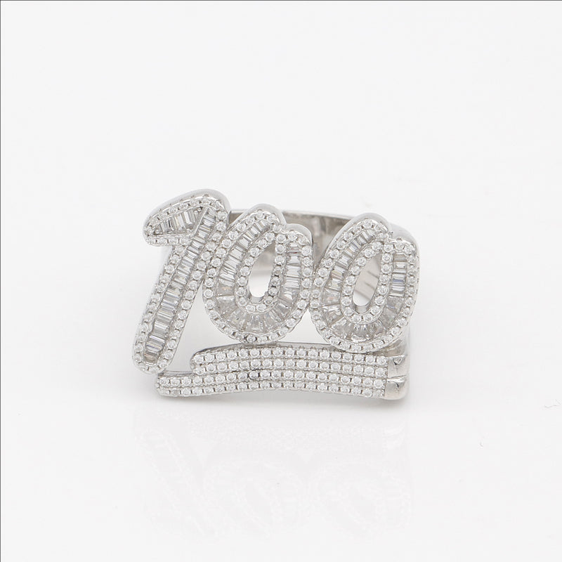 Introducing our Moissanite 100 Points Championship Ring in Sterling Silver, a symbol of victory and excellence. This striking ring features the number "100" prominently displayed, adorned with brilliant moissanite stones and crafted from high-quality sterling silver. Perfect for champions and those who appreciate luxurious and meaningful jewelry, this ring adds a touch of prestige and brilliance to any collection. Celebrate your achievements with this distinctive and opulent accessory. 💯🏆💎