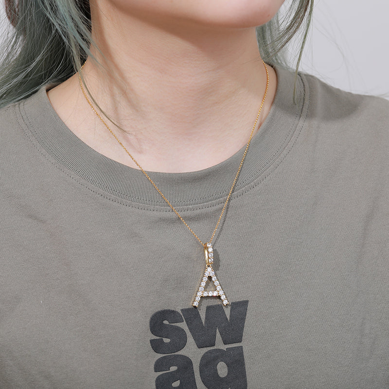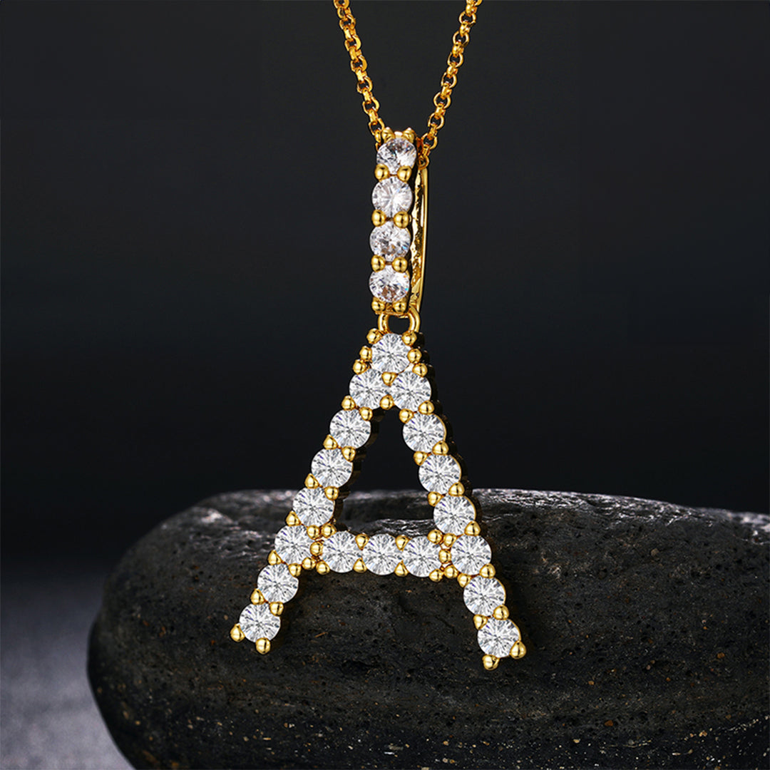 Introducing our Moissanite Alphabet Initial Name Letter Pendant in Sterling Silver, a stylish and personalized touch for any jewelry collection. This elegant pendant features a single letter initial, adorned with sparkling moissanite stones and set in high-quality sterling silver. Perfect for celebrating your name or a loved one's, this pendant adds a unique, sophisticated flair to any outfit, making it a cherished keepsake and a statement of individuality. 💎🔠