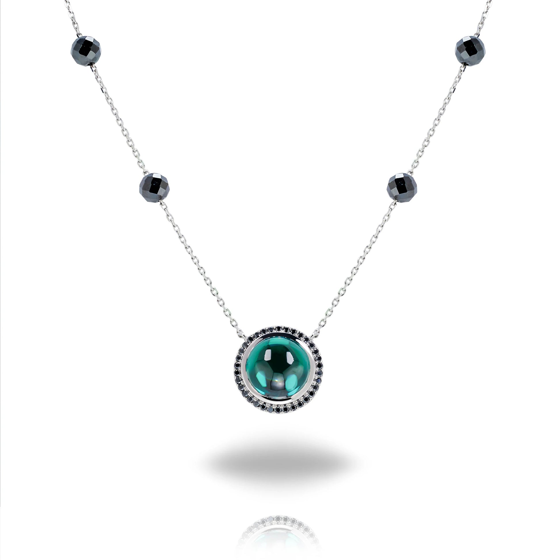 MOISSANITE AQUA ECLIPSE NECKLACE IN SOLID GOLD