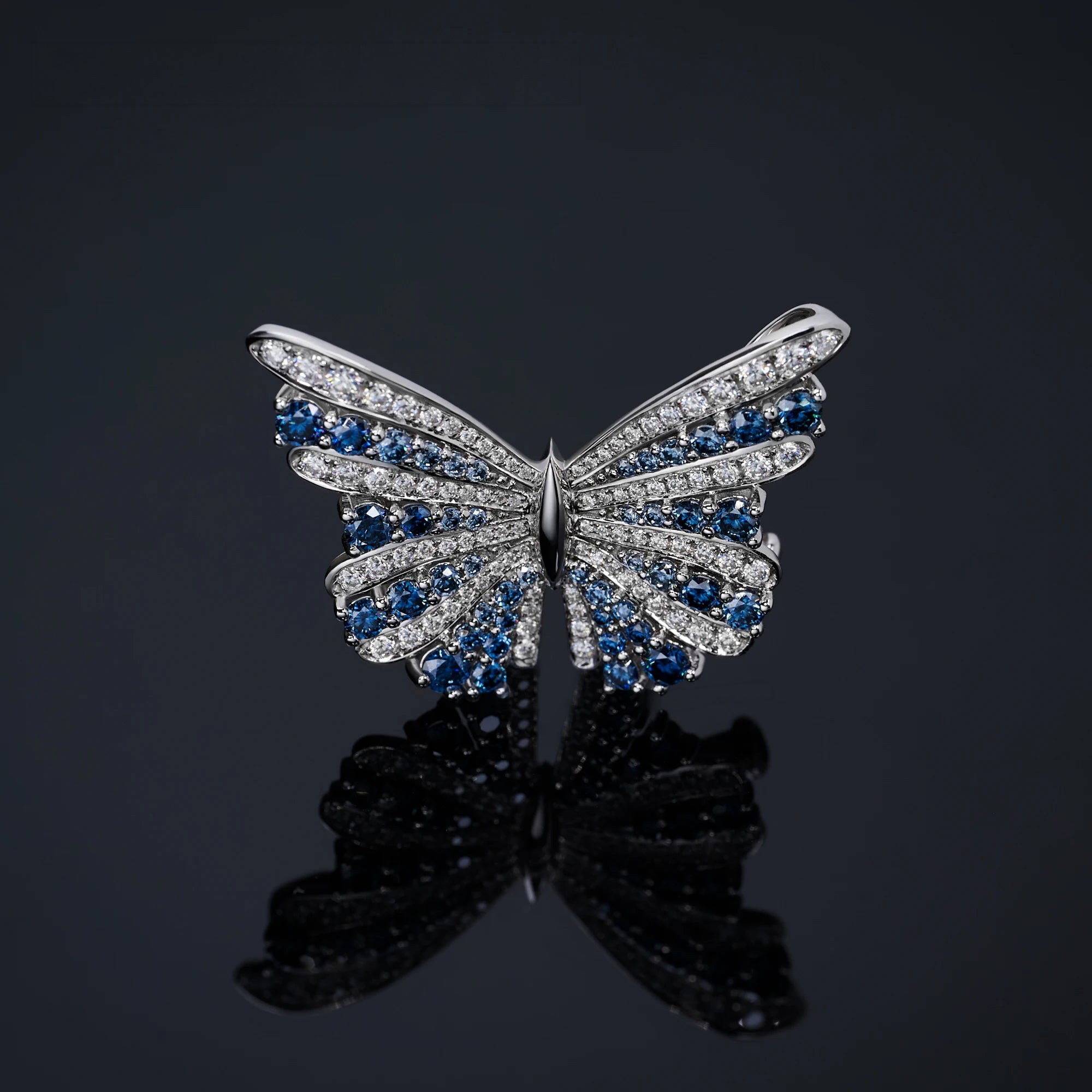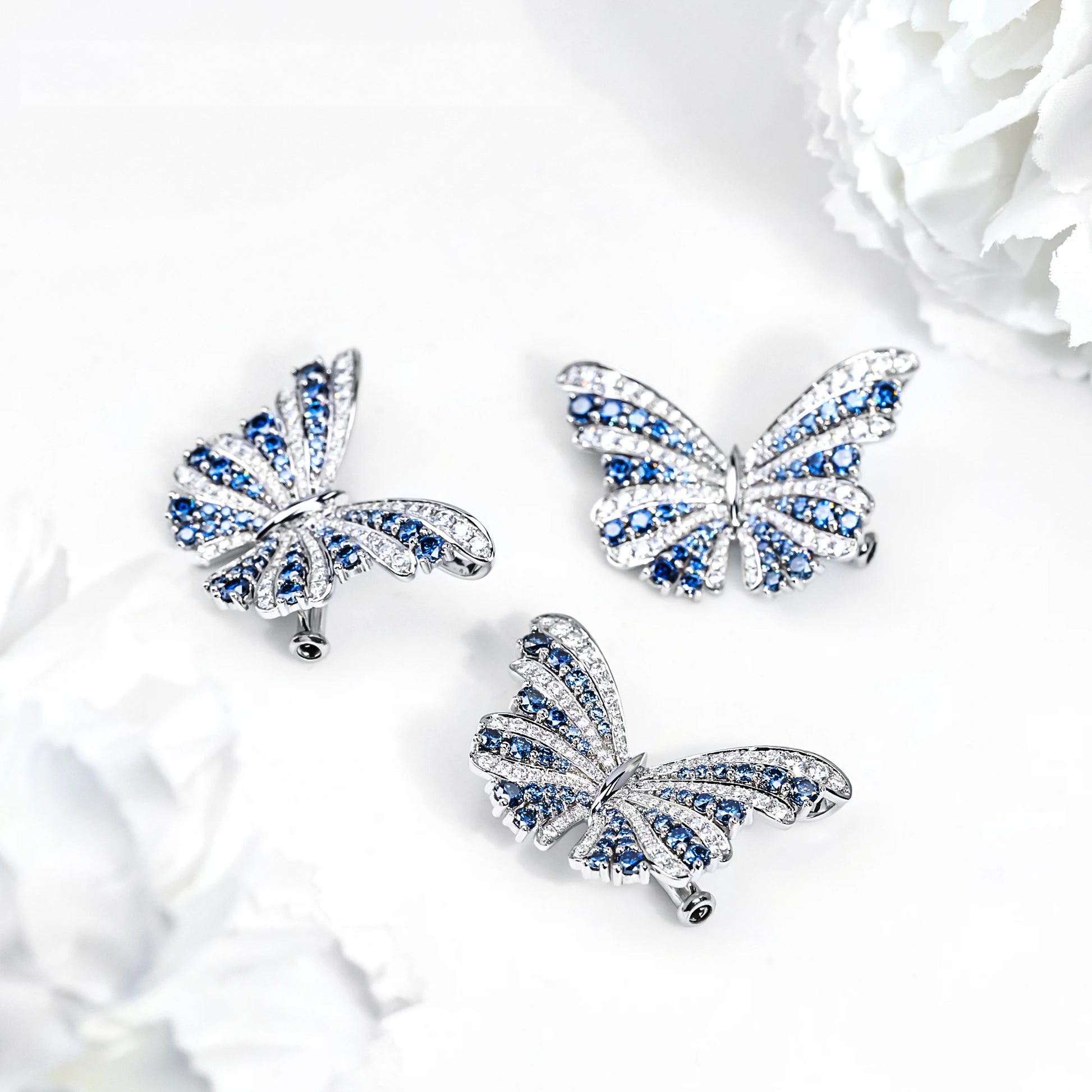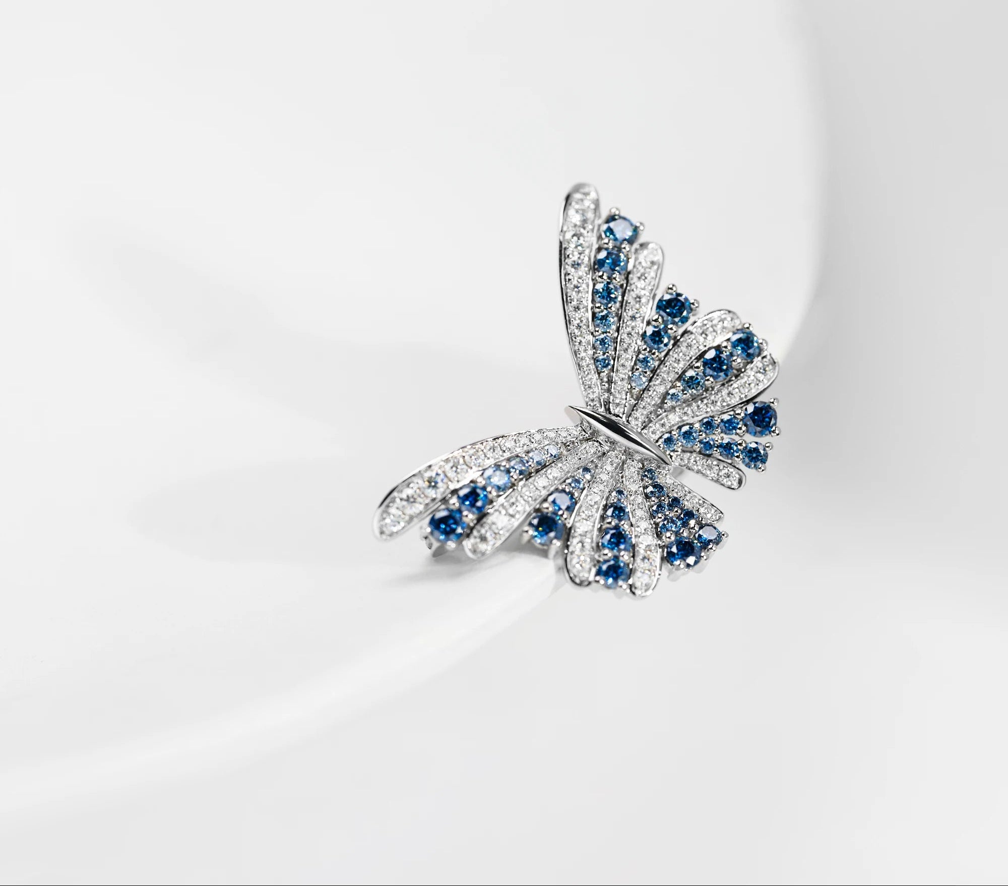 Moissanite Azure Wings Brooch in Solid White Gold: A masterpiece of elegance and grace 💎🕊️. Crafted in solid White gold, this brooch features shimmering moissanite stones and vibrant blue accents that evoke the serene beauty of open skies. Its refined winged design symbolizes freedom and sophistication — a perfect touch of luxury for any occasion.