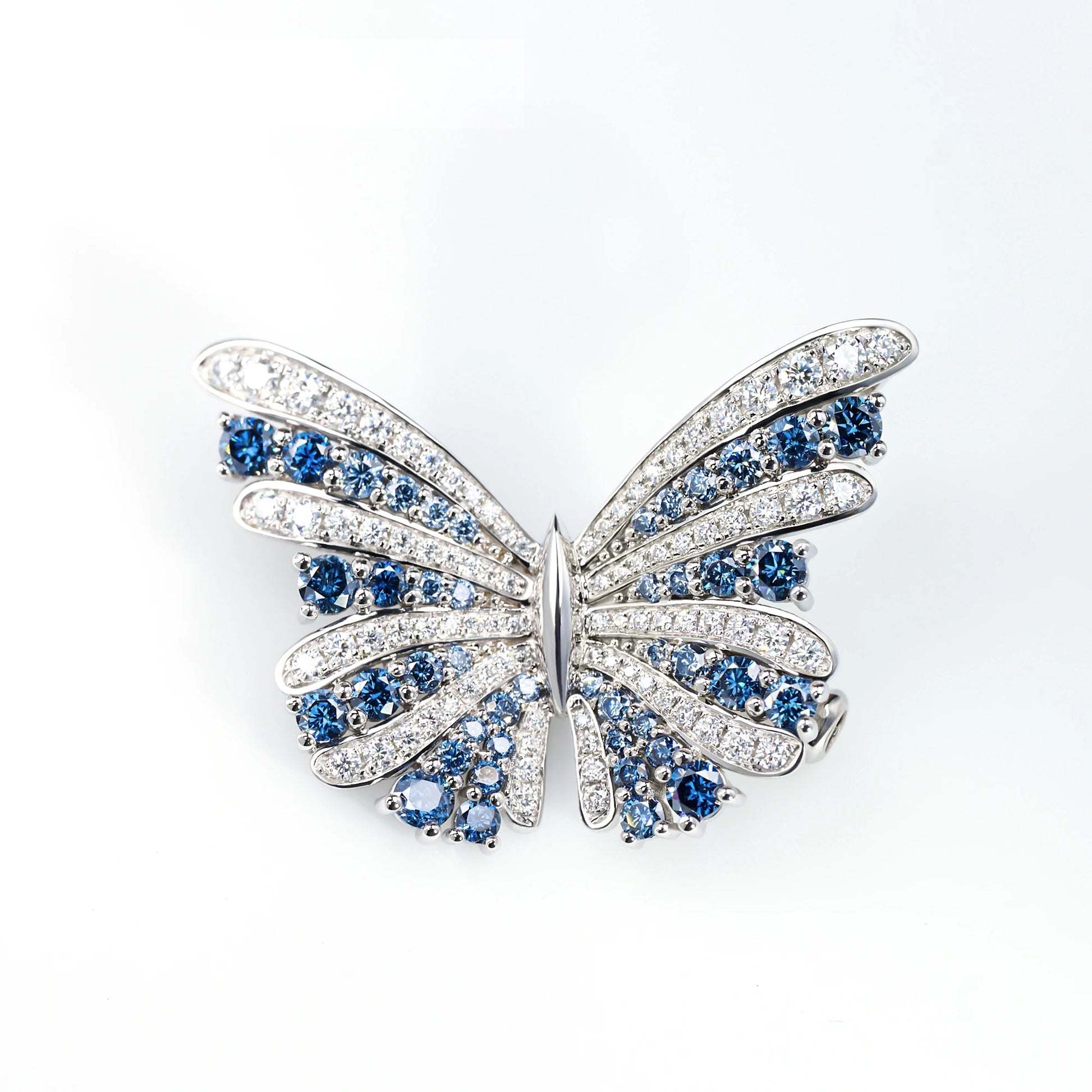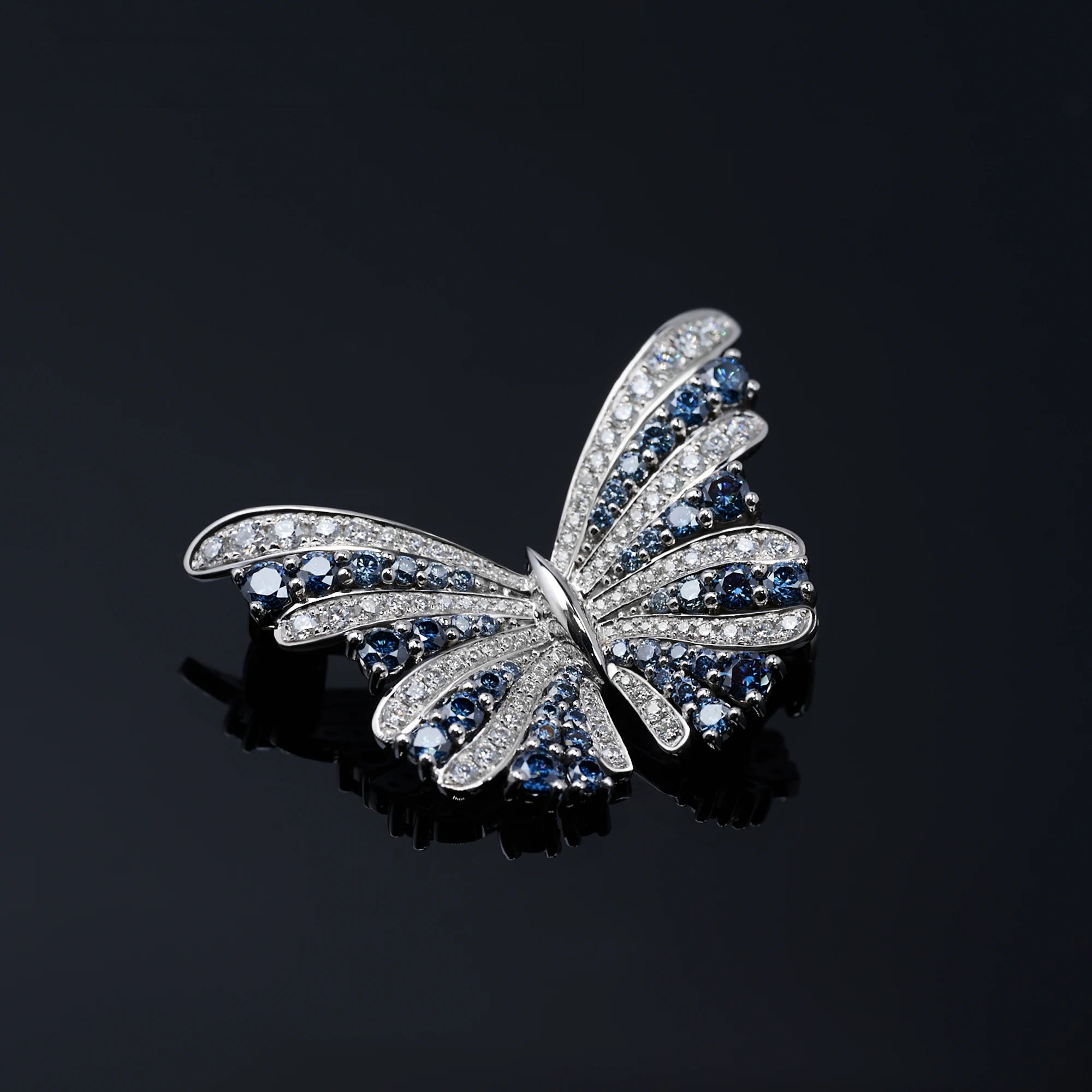 MOISSANITE AZURE WINGS BROOCH IN SOLID WHITE GOLD