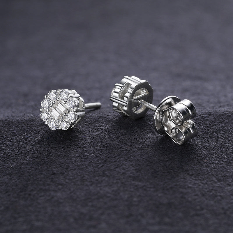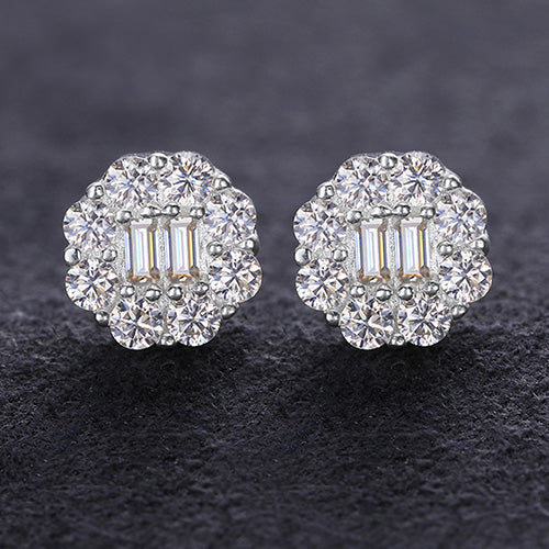 MOISSANITE BAGUETTE FLOWER STUD EARRINGS IN STERLING SILVER