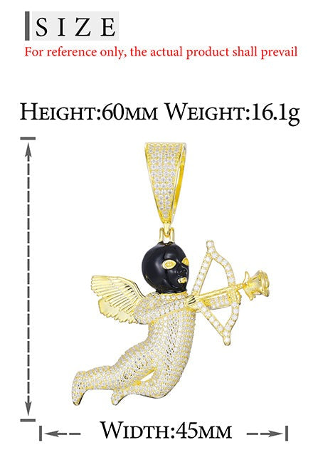 MOISSANITE BLACK MASKED ANGEL CUPID PENDANT IN STERLING SILVER