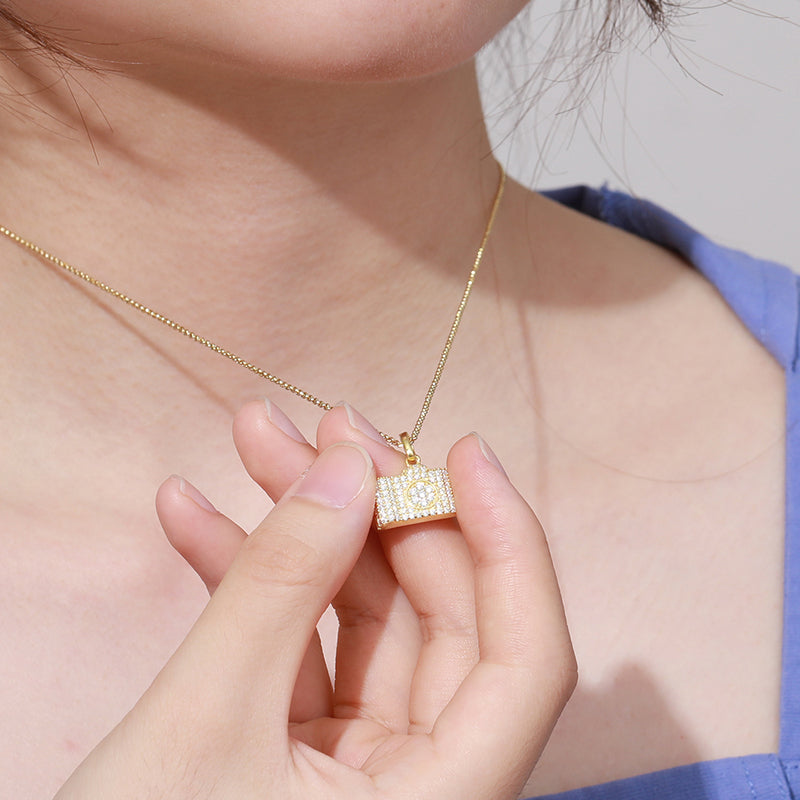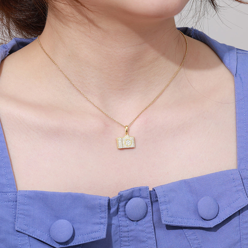 Introducing the Moissanite Camera Pendant in Sterling Silver. This stylish pendant features a detailed camera design crafted from sterling silver and adorned with sparkling moissanite stones. Perfect for photography enthusiasts or those who appreciate unique jewelry, this pendant adds a touch of creativity and elegance to any outfit. Ideal for everyday wear or as a thoughtful gift, it combines modern design with artistic flair. Elevate your jewelry collection with this distinctive and fashionable accessory. 📷💎