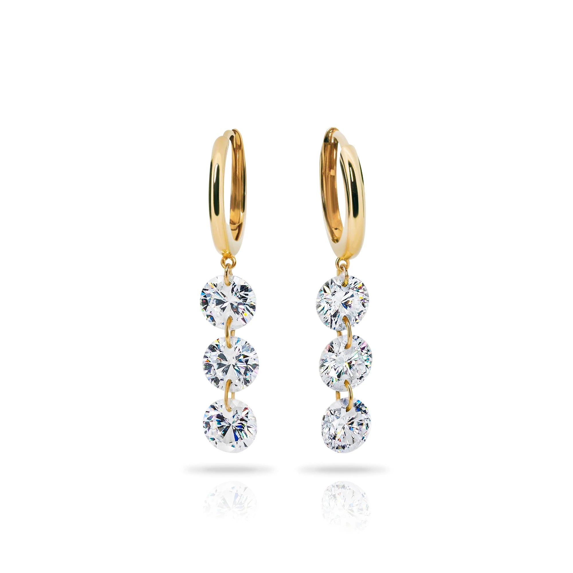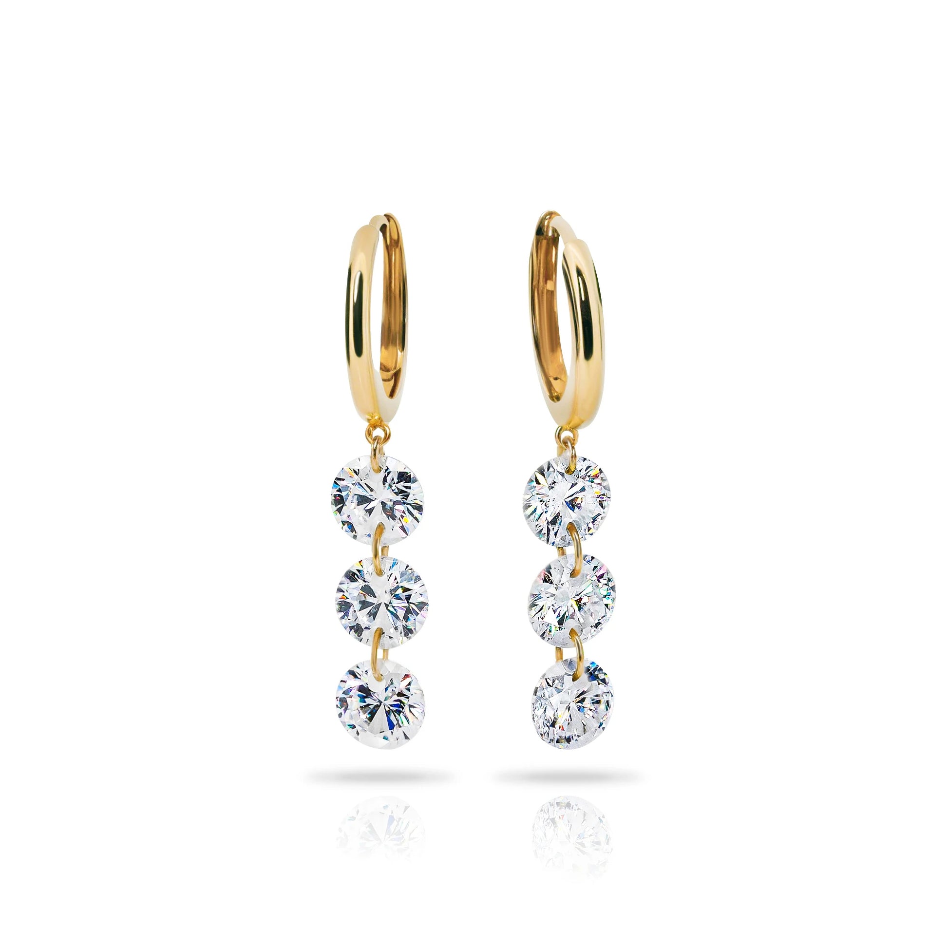 Moissanite Cascading Radiance Drop Earrings in Solid Gold: Dazzle in timeless beauty with these exquisite drop earrings, featuring a trio of brilliant moissanite stones that shimmer with every move. Set in lustrous solid gold, their elegant cascade design adds a touch of luxury and grace—perfect for elevating both day and evening looks. ✨💛