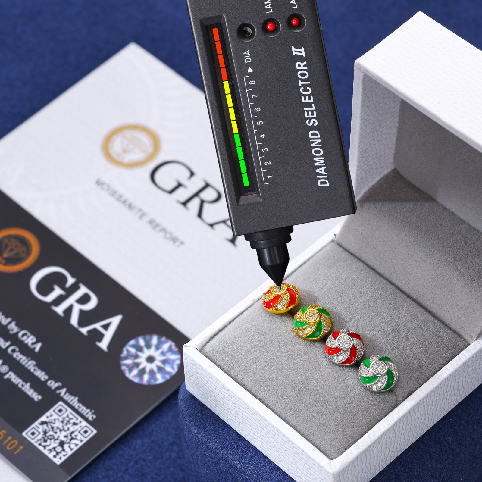 MOISSANITE CHRISTMAS CANDY EARRINGS IN STERLING SILVER