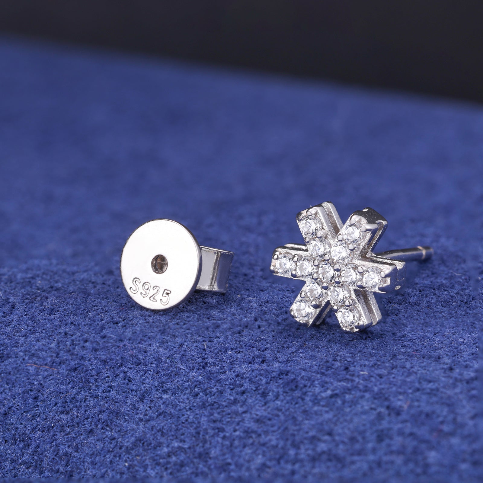 MOISSANITE CHRISTMAS SNOWFLAKE STUD EARRING IN STERLING SILVER