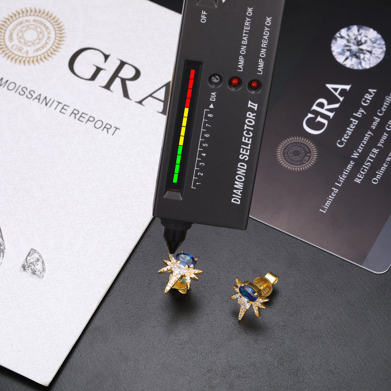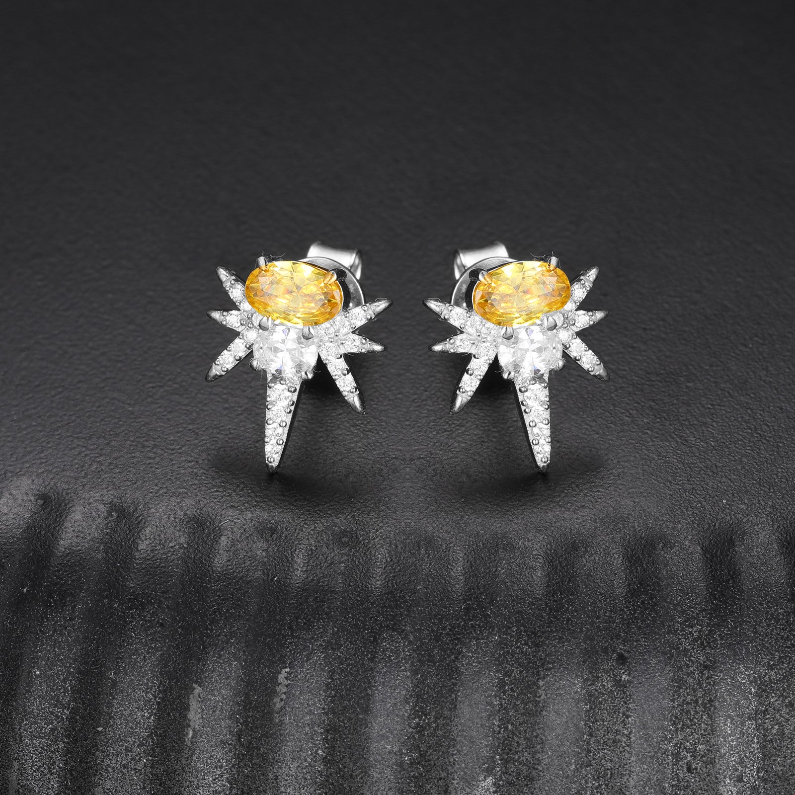 Discover elegance with our Moissanite Colored CZ Oval Bee-Sting Stud Earrings in Sterling Silver {Style 2}. Crafted to perfection, these earrings feature a dazzling oval-cut CZ complemented by brilliant moissanite accents, set in lustrous sterling silver. Ideal for adding a touch of sophistication to any outfit. 🌟✨
