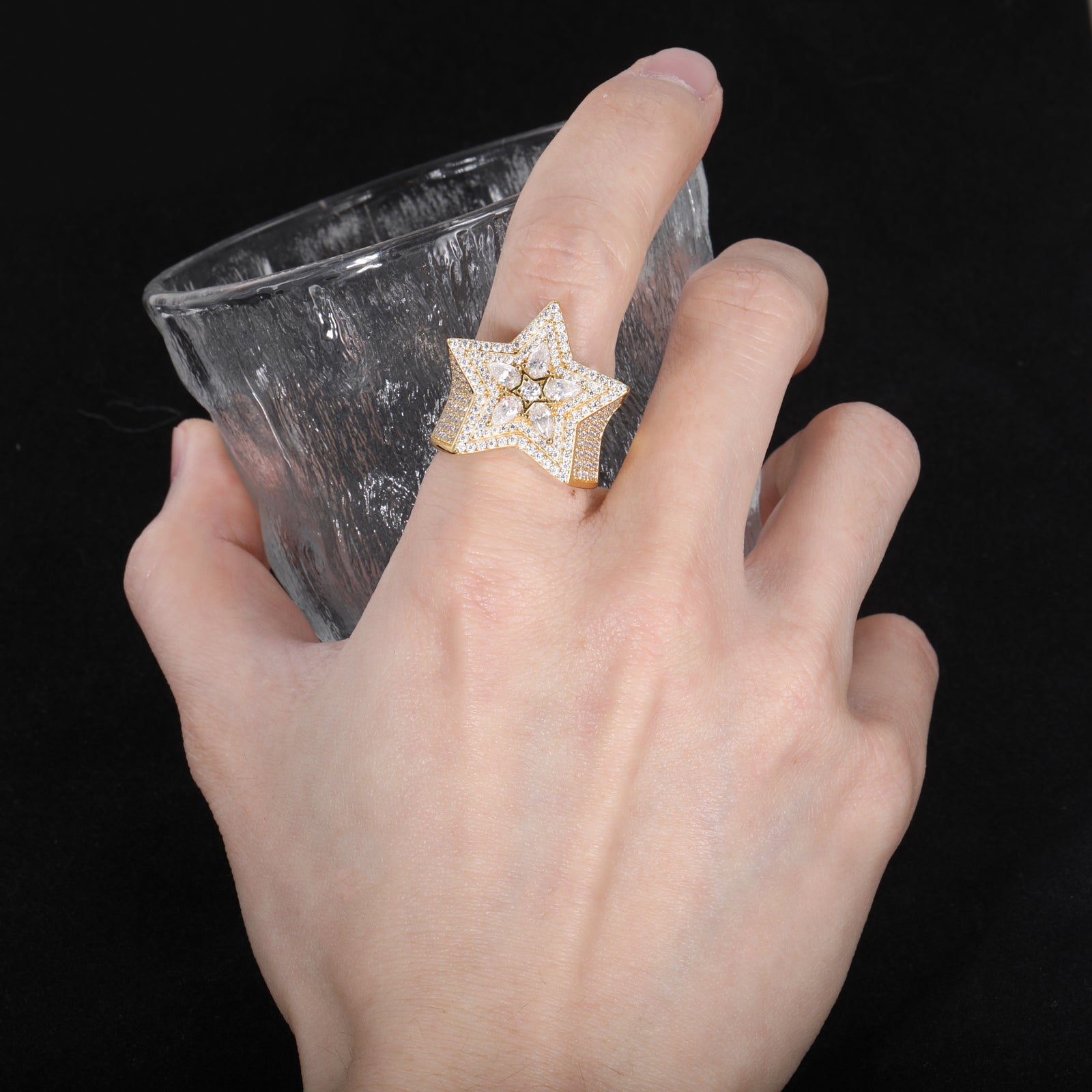 MOISSANITE DIAMOND 5 LAYER ICED OUT STAR RING
