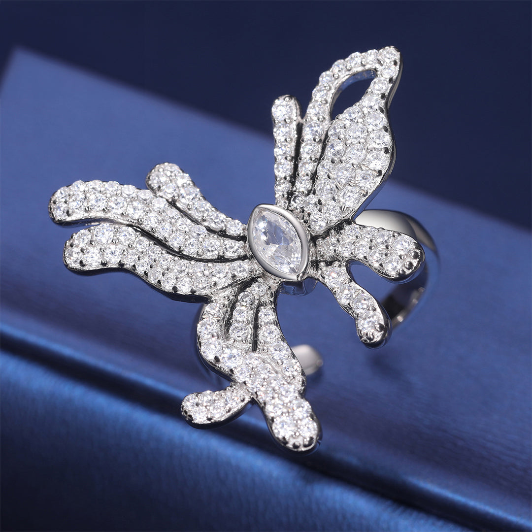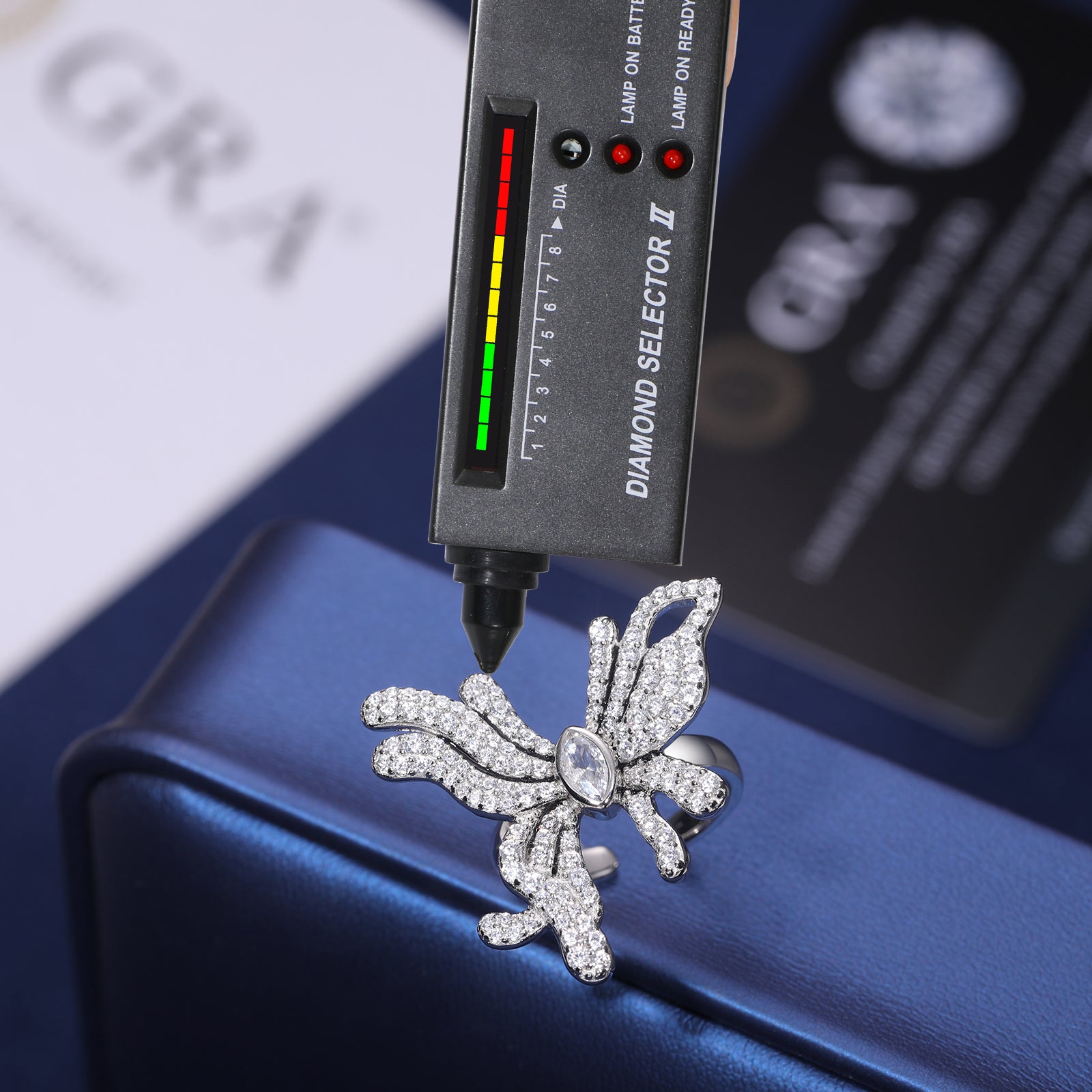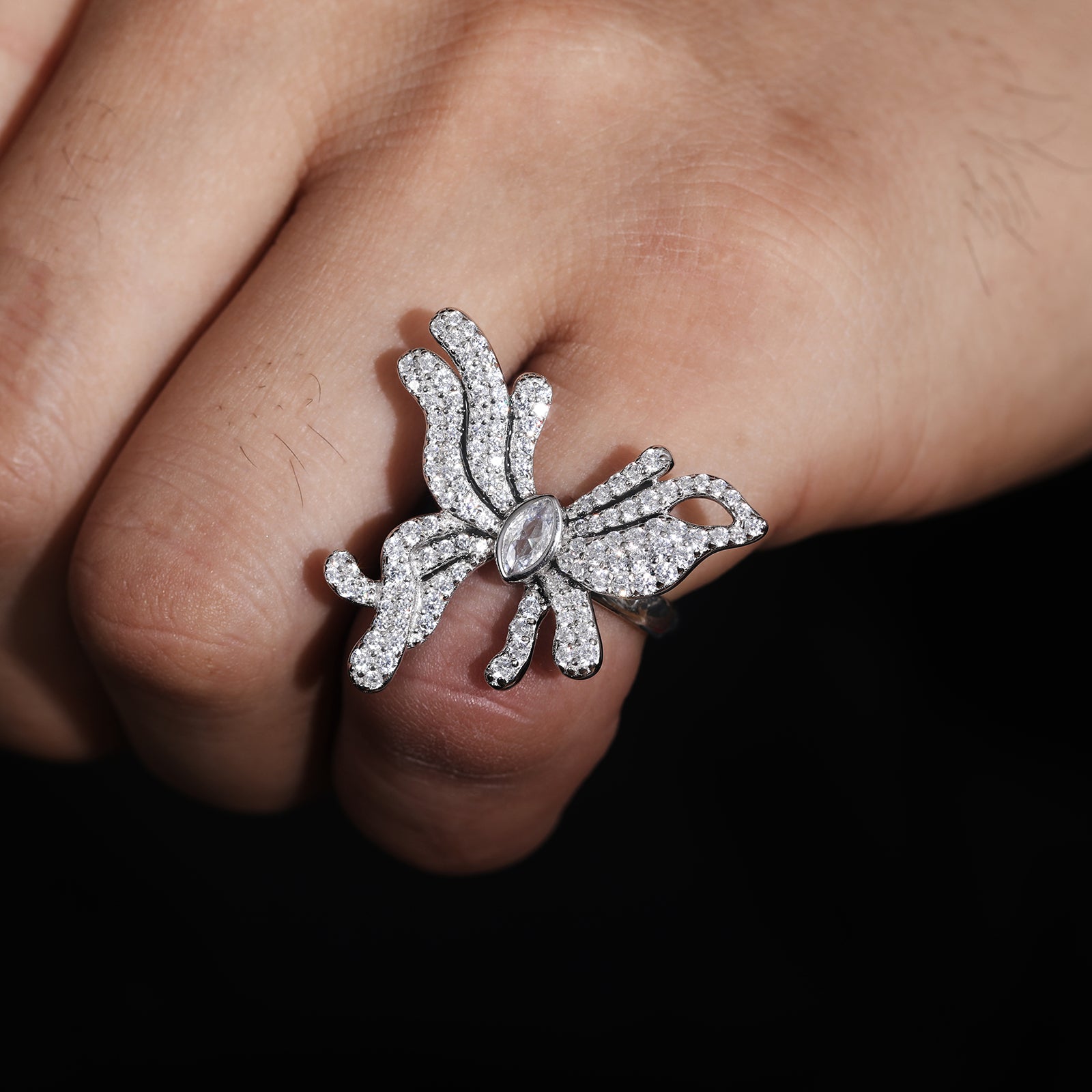 MOISSANITE DIAMOND ADJUSTABLE BUTTERFLY RING IN STERLING SILVER