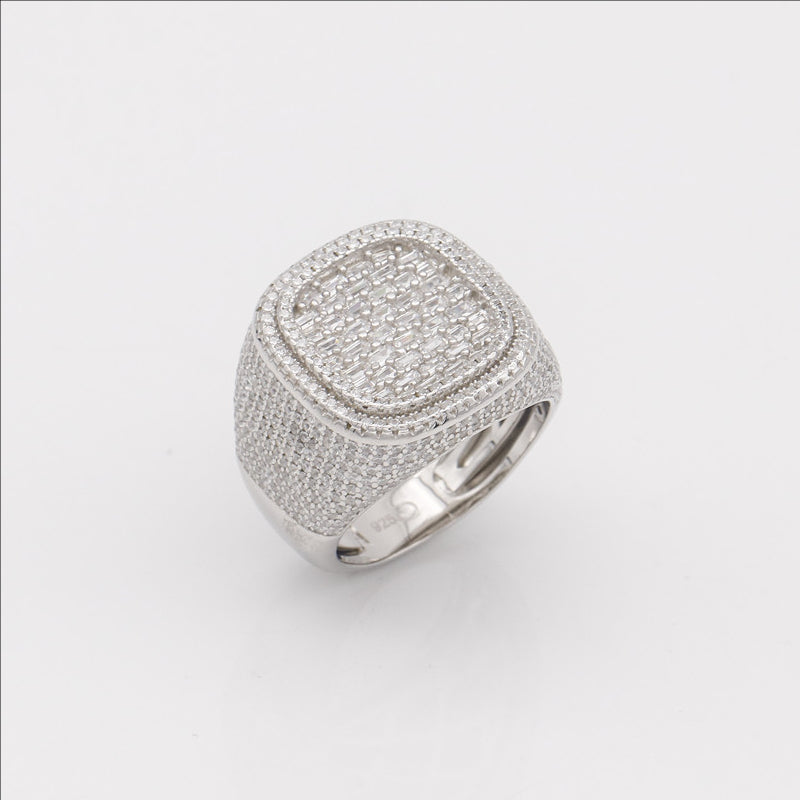 Introducing the Moissanite Diamond Baguette Championship Ring in Sterling Silver, a statement piece that exudes boldness and luxury. This striking ring is designed with substantial heft, featuring dazzling baguette-cut Moissanite diamonds meticulously set in premium 925 Sterling Silver. Its bulky design ensures it stands out, making it the perfect accessory for those who love to make a statement. Ideal for commemorating achievements or adding a touch of grandeur to your jewelry collection, this championship ring combines elegance with a powerful presence.