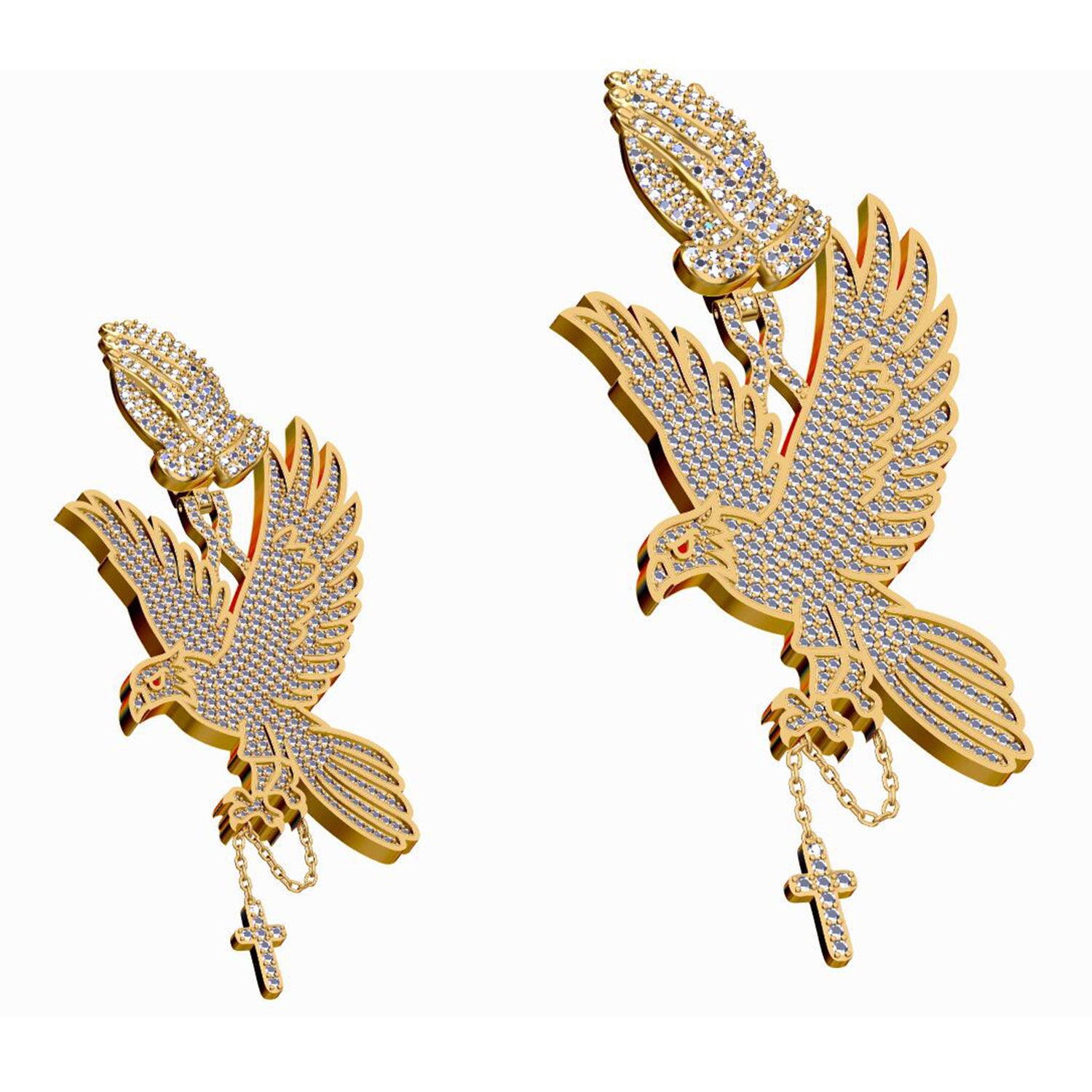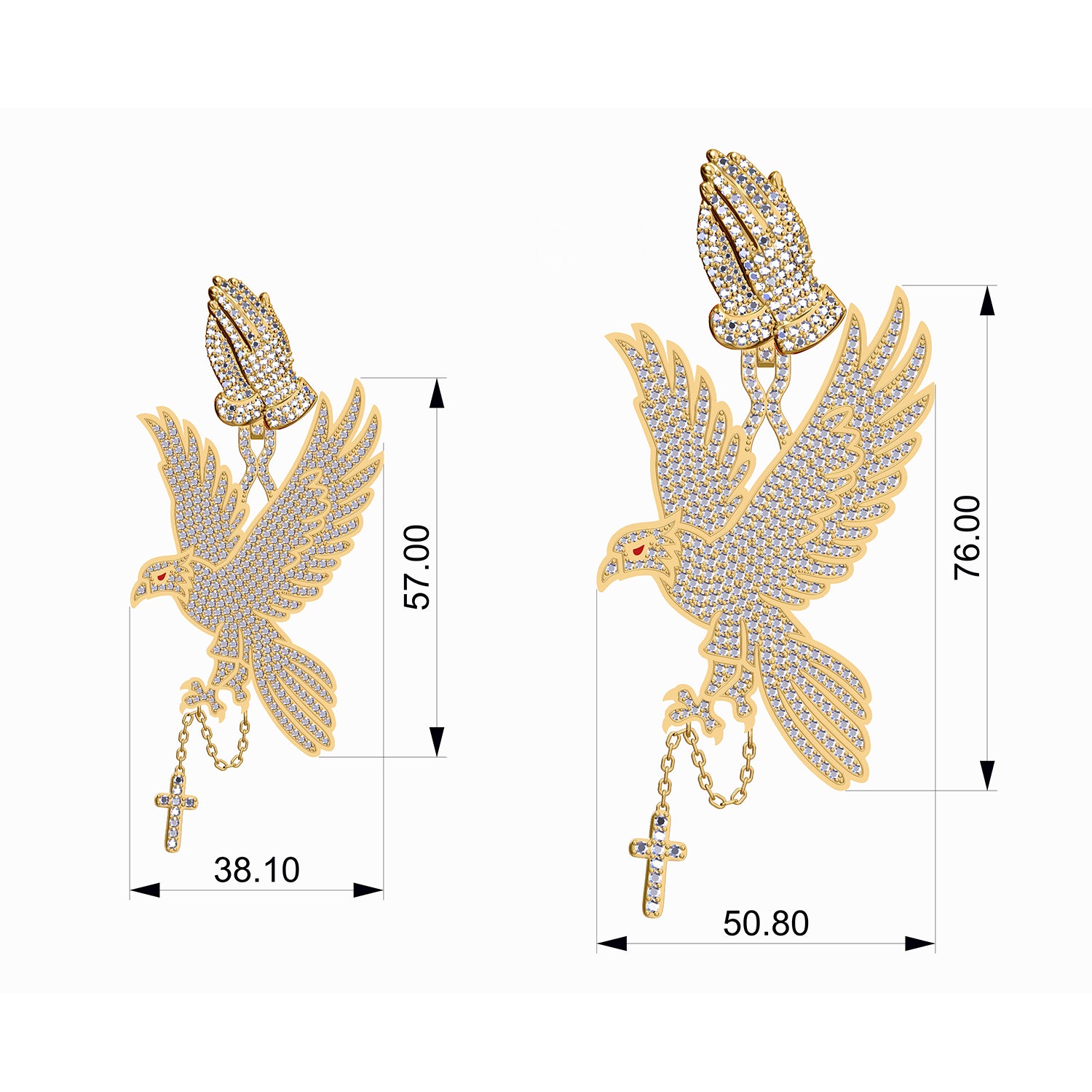 MOISSANITE DIAMOND CROSS PRAY HAND CHARM EAGLE PENDANT IN STERLING SILVER