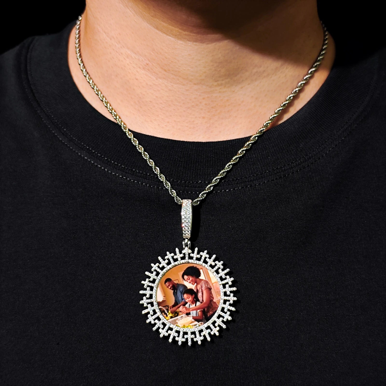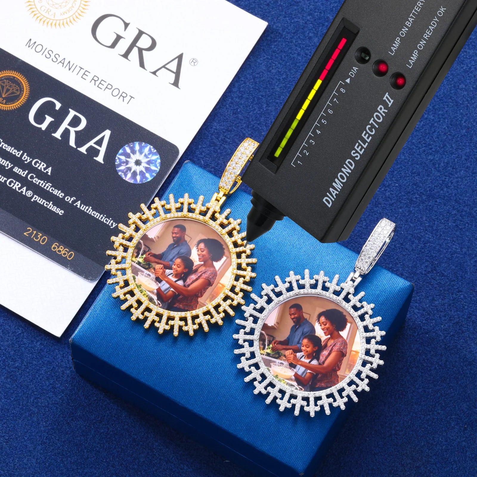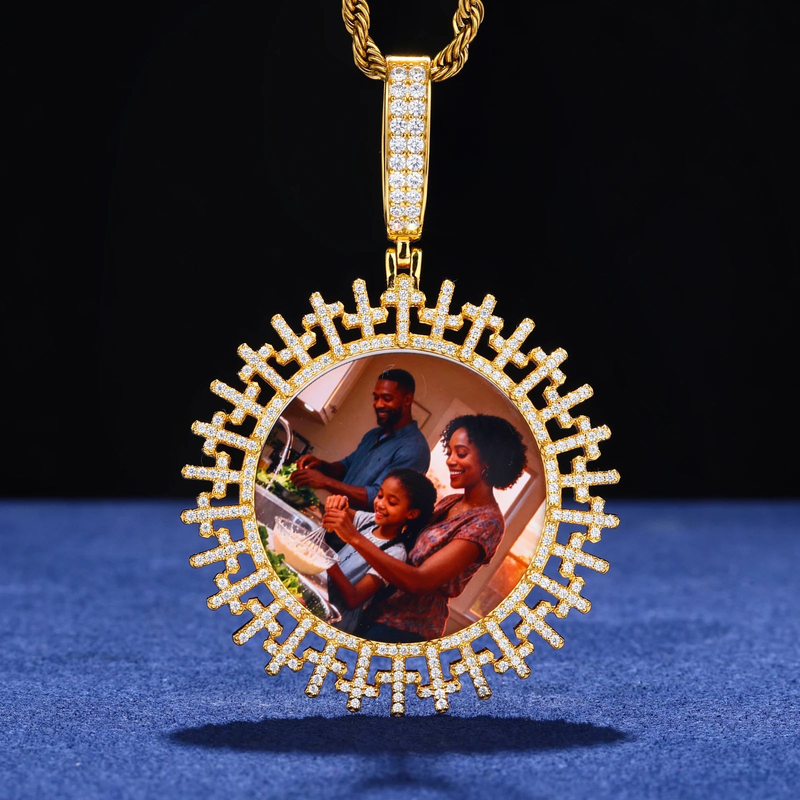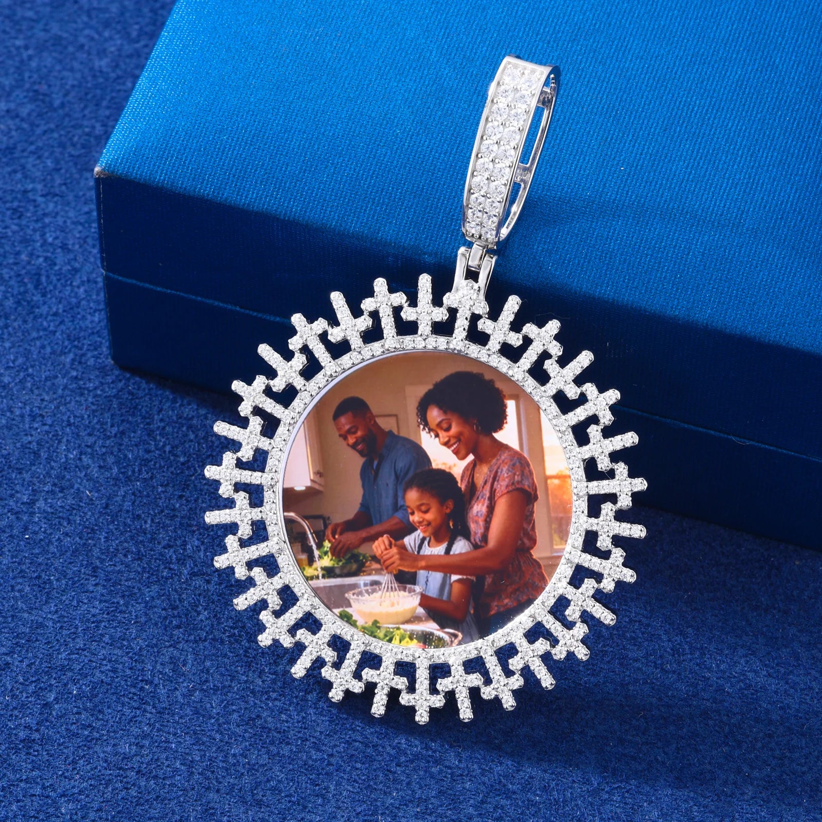 Moissanite Diamond Cross Photo Pendant in Sterling Silver: This meaningful piece blends brilliance with personal expression ✨. Crafted in sterling silver, it features a radiant cross lined with moissanite diamonds for a bright, eye-catching shine. The center holds a photo slot, allowing you to carry a cherished memory close to your heart. Perfect for everyday wear or special moments, it adds both sentiment and style to your look 📸. A beautiful keepsake that stands out with elegance and purpose.