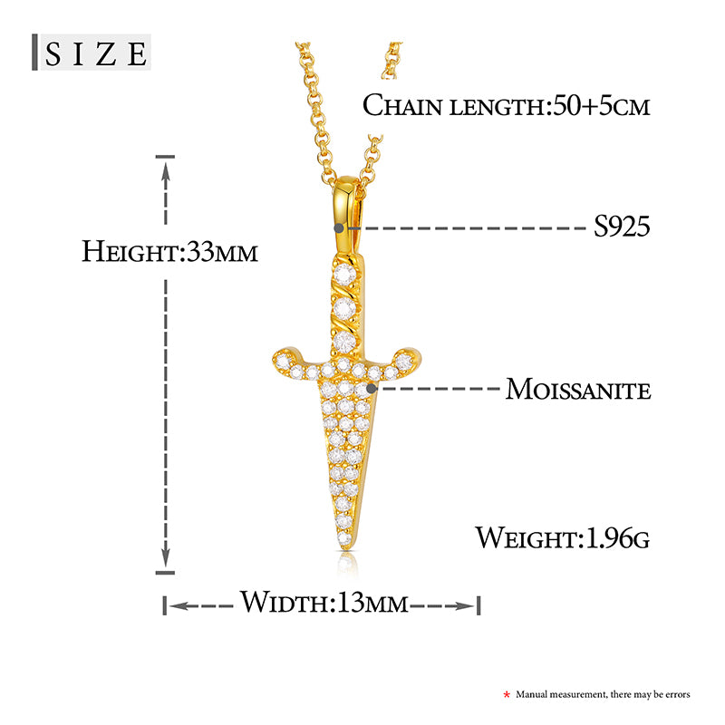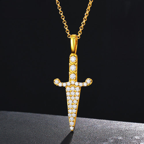 Unleash your inner strength with our Moissanite Diamond Dagger Pendant in Sterling Silver. This striking piece features a dazzling moissanite diamond set in a finely crafted sterling silver dagger design. Perfect for adding a touch of fierce elegance to any ensemble, this pendant embodies both power and sophistication. Make a bold statement and elevate your style with this unique and captivating accessory. 🌟💎