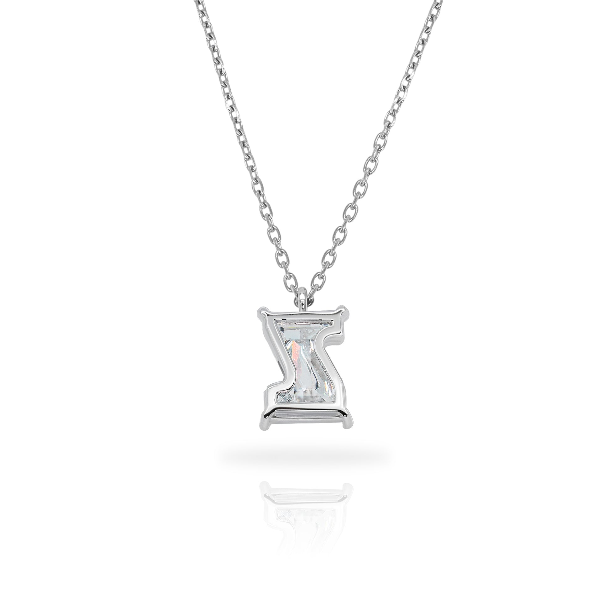 MOISSANITE DIAMOND DAINTY INITIAL PENDANT IN SOLID WHITE GOLD