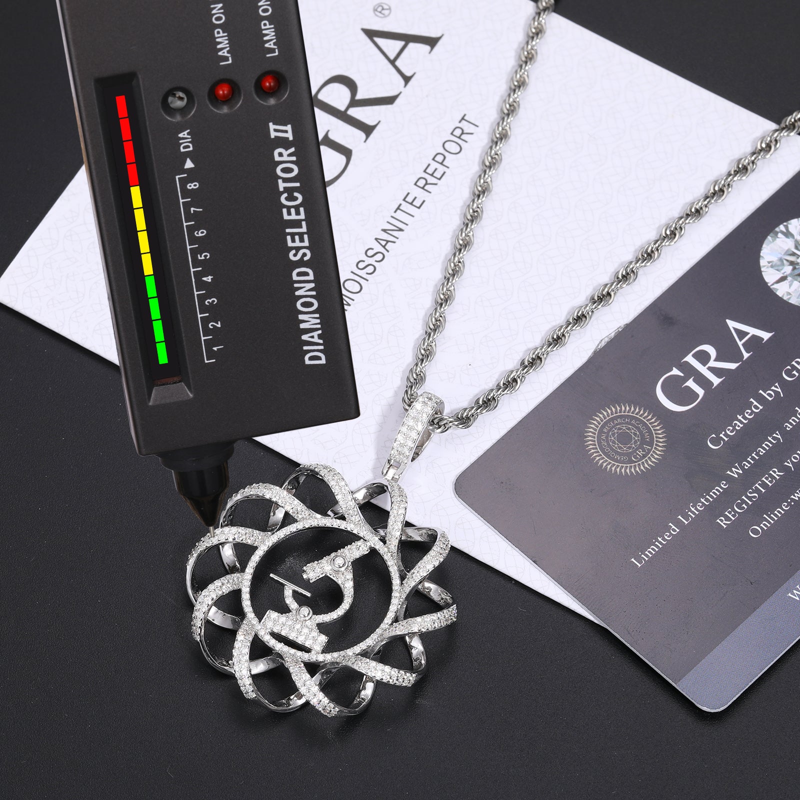 MOISSANITE DIAMOND DNA MICROSCOPE PENDANT NECKLACE IN STERLING SILVER