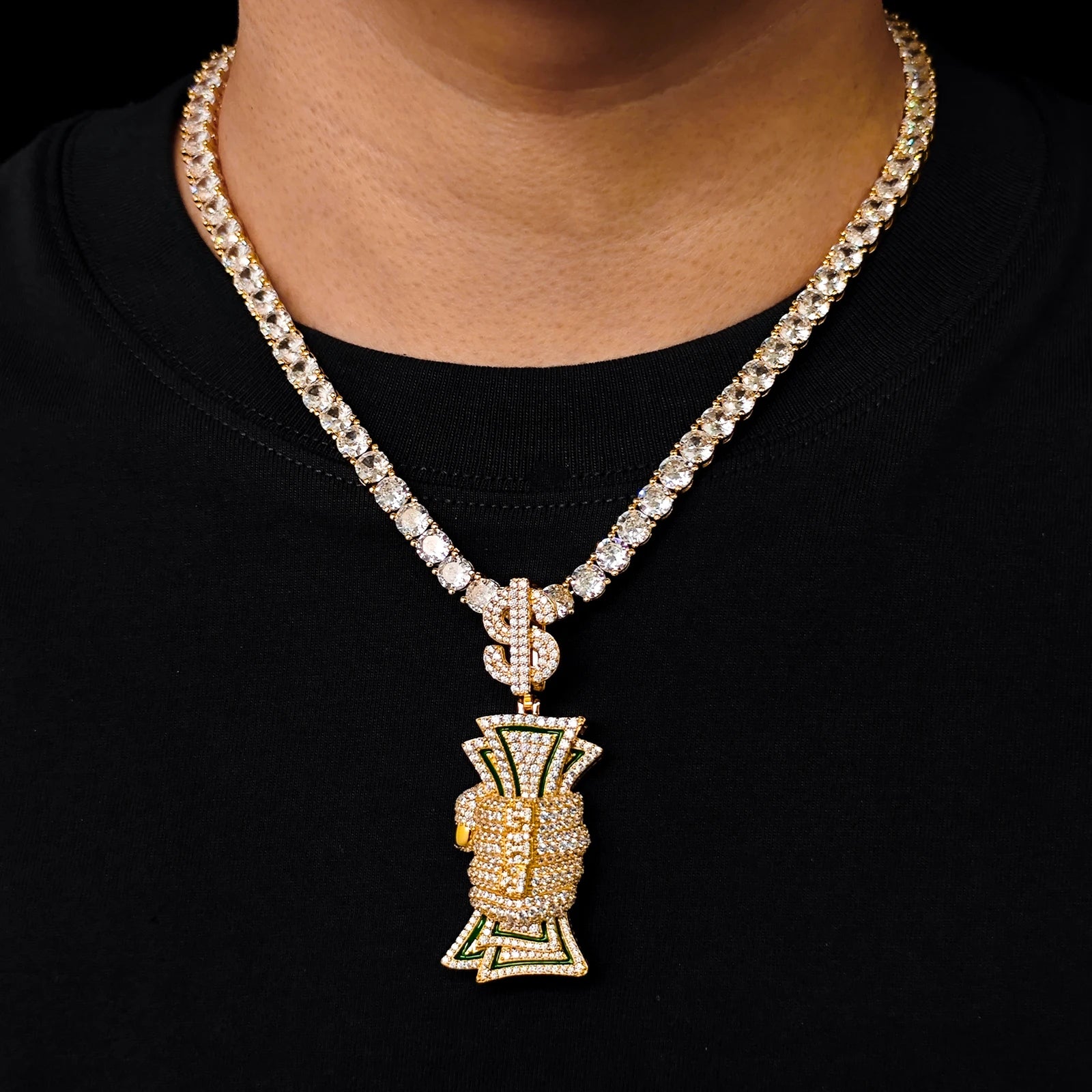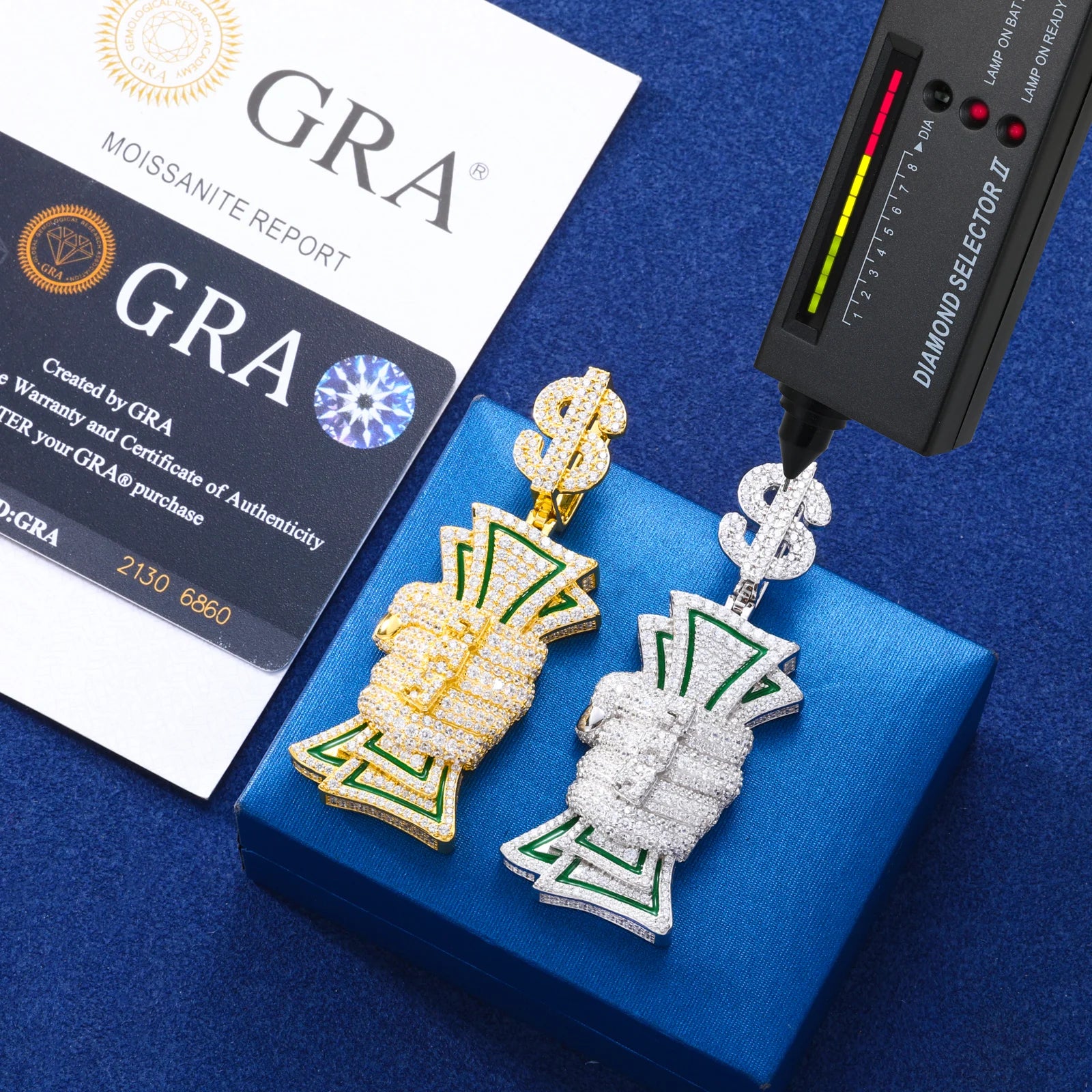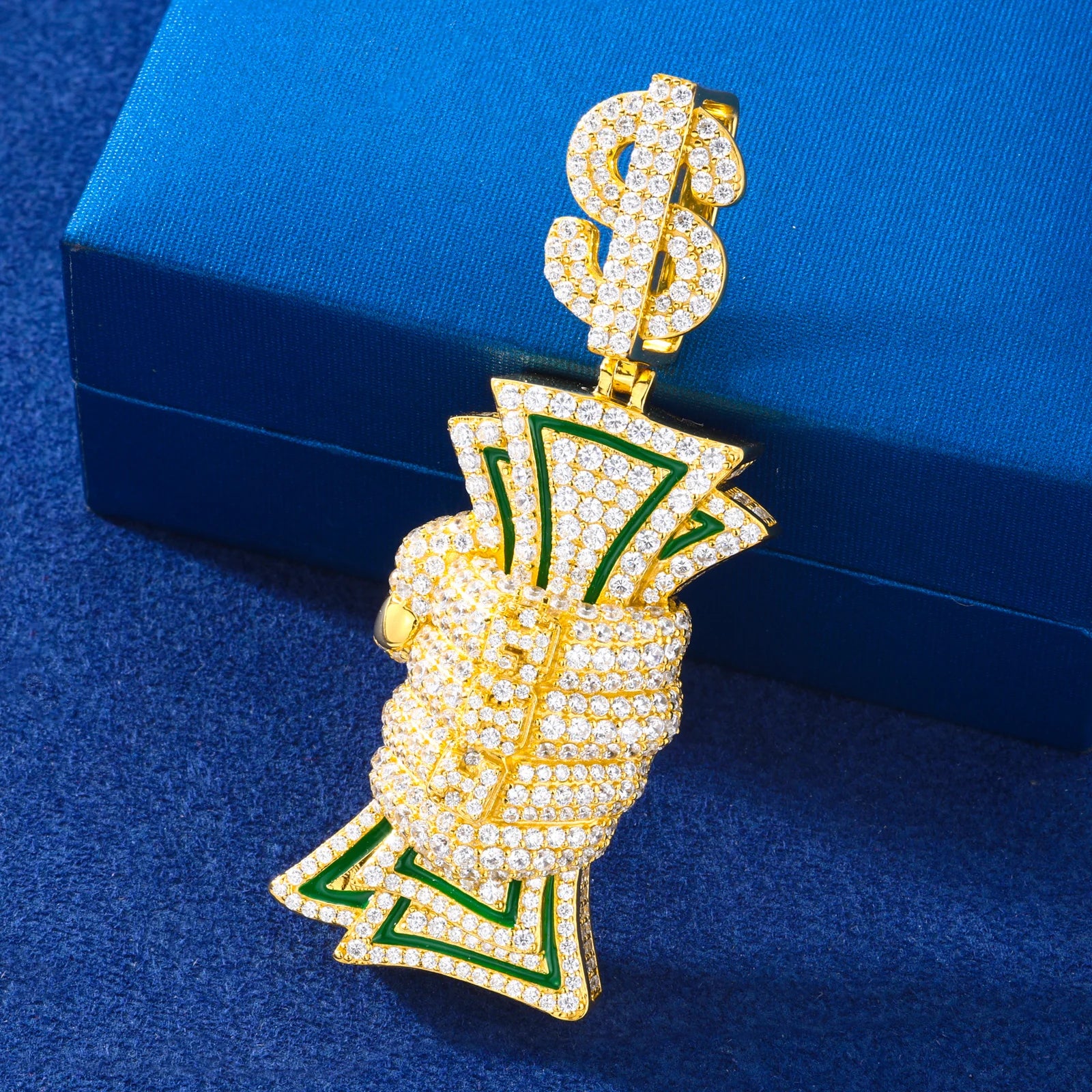 MOISSANITE DIAMOND DOLLAR SIGN MONEY GRAB PENDANT IN STERLING SILVER