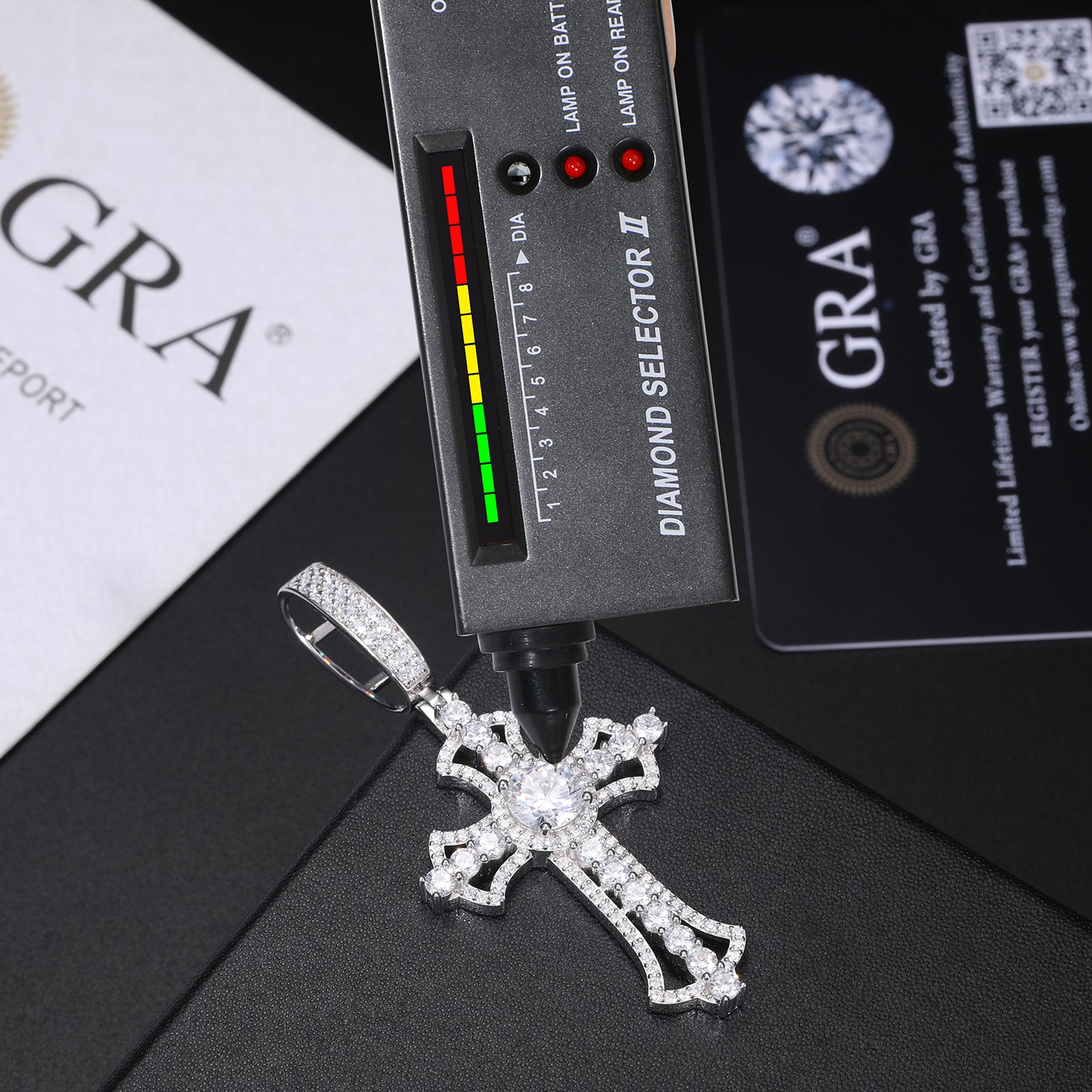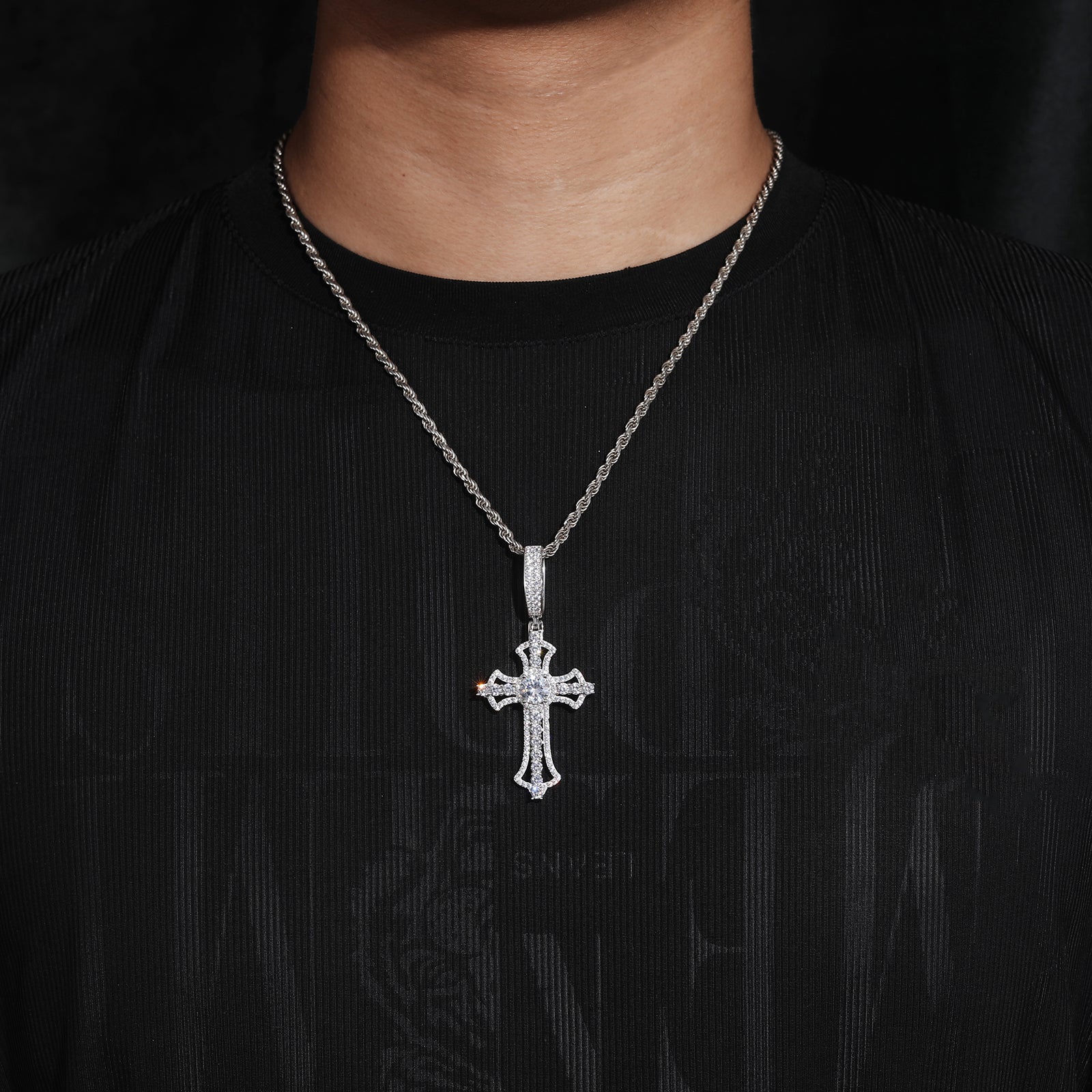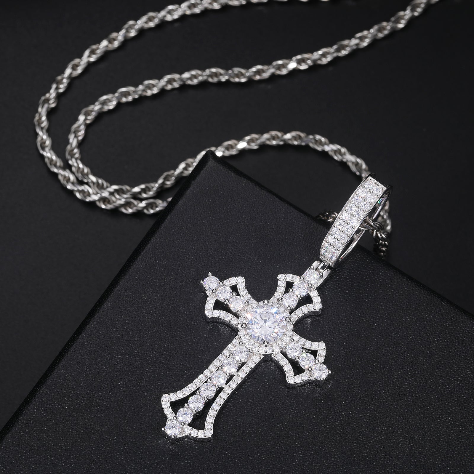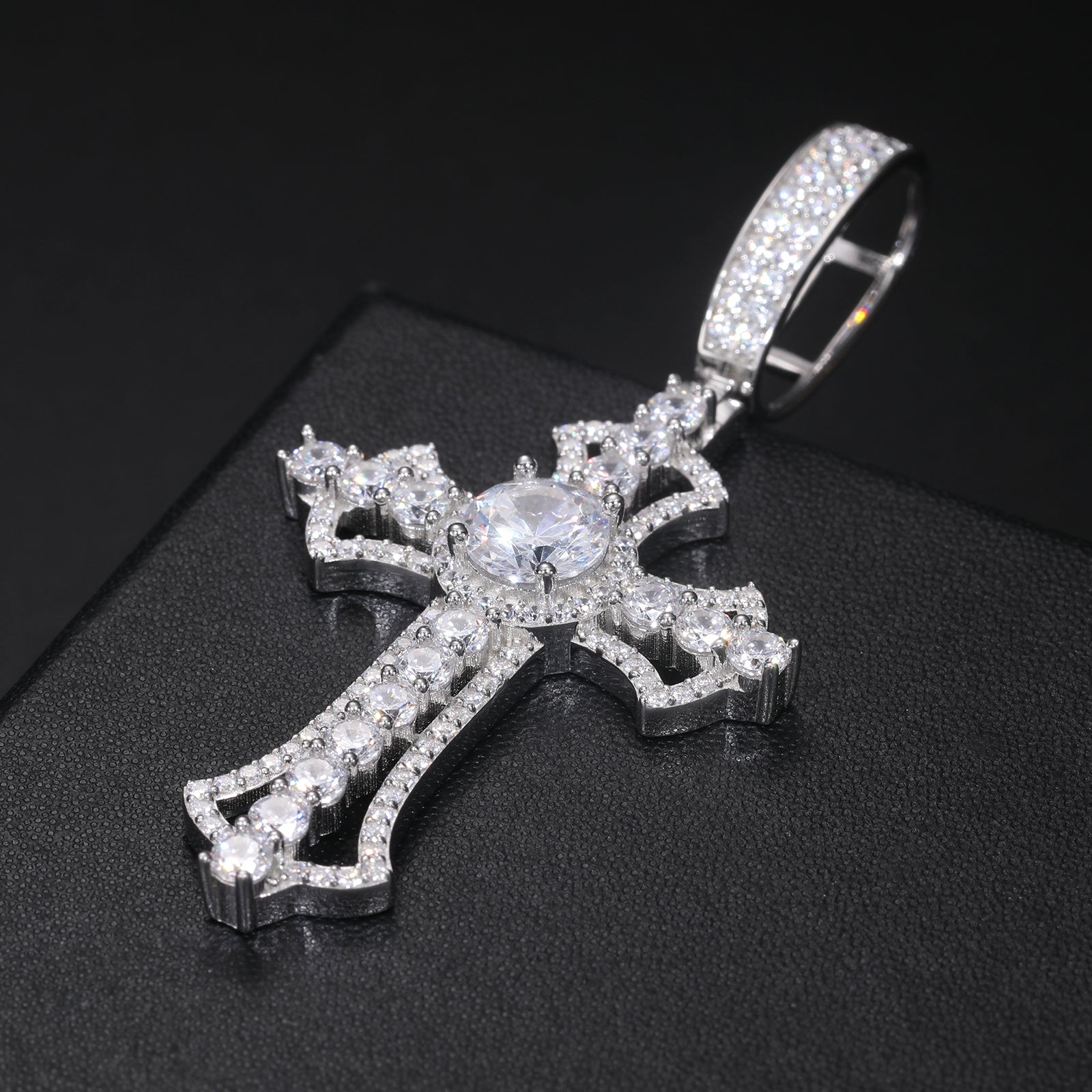 MOISSANITE DIAMOND ENCASED CROSS PENDANT IN STERLING SILVER