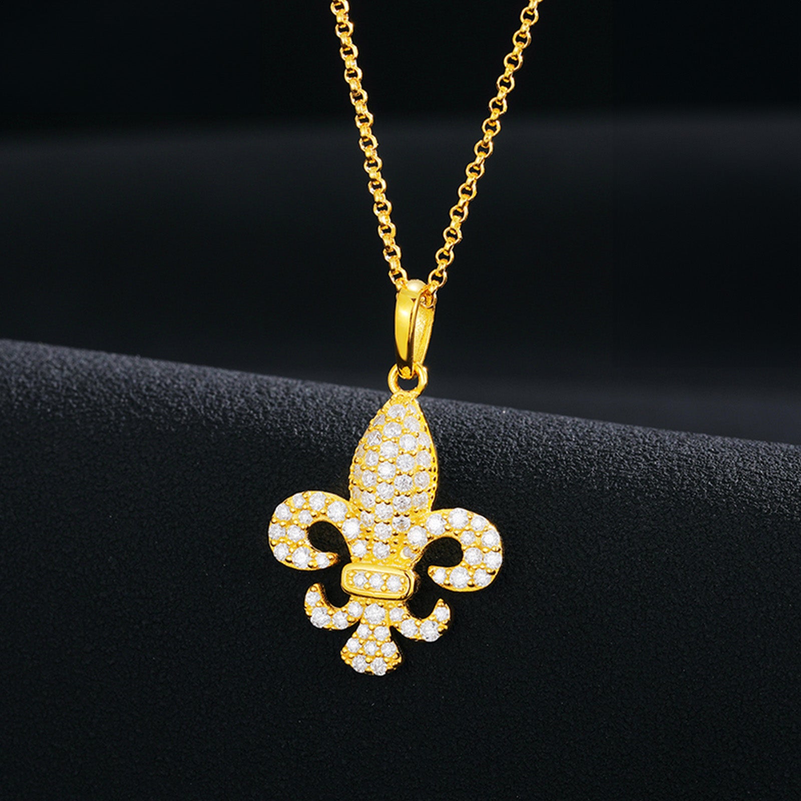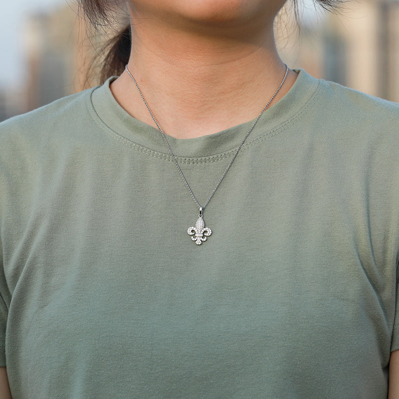 MOISSANITE DIAMOND FLEUR-DE-LIS PENDANT NECKLACE IN STERLING SILVER