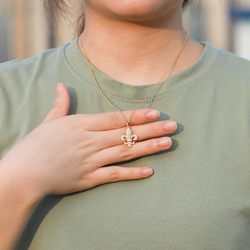 Introducing our captivating Moissanite Diamond Fleur-de-lis Pendant Necklace in Sterling Silver. 💎 This intricately designed piece boasts exquisite craftsmanship, with shimmering moissanite diamonds accentuating the Fleur-de-lis's elegant silhouette.
