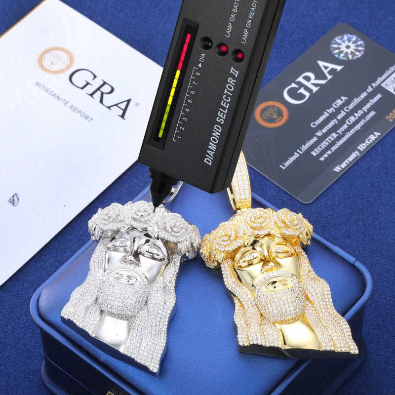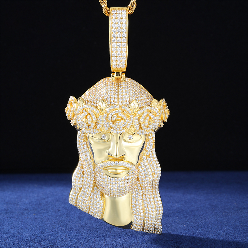 Adorn your faith with elegance and luxury with our Moissanite Diamond Iced Out Floral Tiara Jesus Pendant. This exquisite pendant, crafted in sterling silver, showcases a beautifully detailed Jesus face design, crowned with a radiant floral-inspired tiara, encrusted with dazzling moissanite for a divine sparkle. A unique blend of grace, devotion, and artistry, this pendant symbolizes both spiritual strength and timeless beauty.💎🌸
