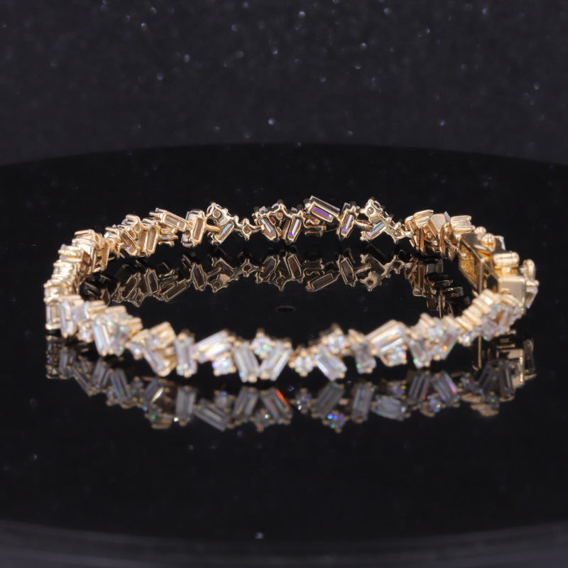 BAGUETTE MOISSANITE GEOMETRIC BRACELET IN 9K SOLID GOLD