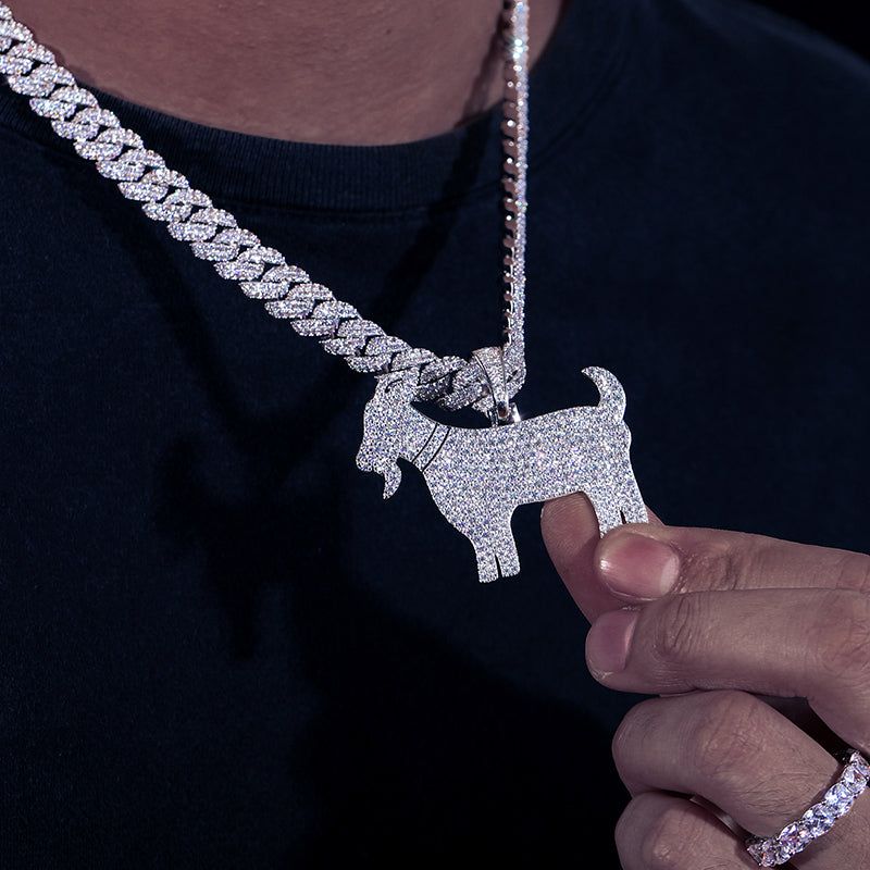 MOISSANITE DIAMOND GOAT PENDANT IN STERLING SILVER