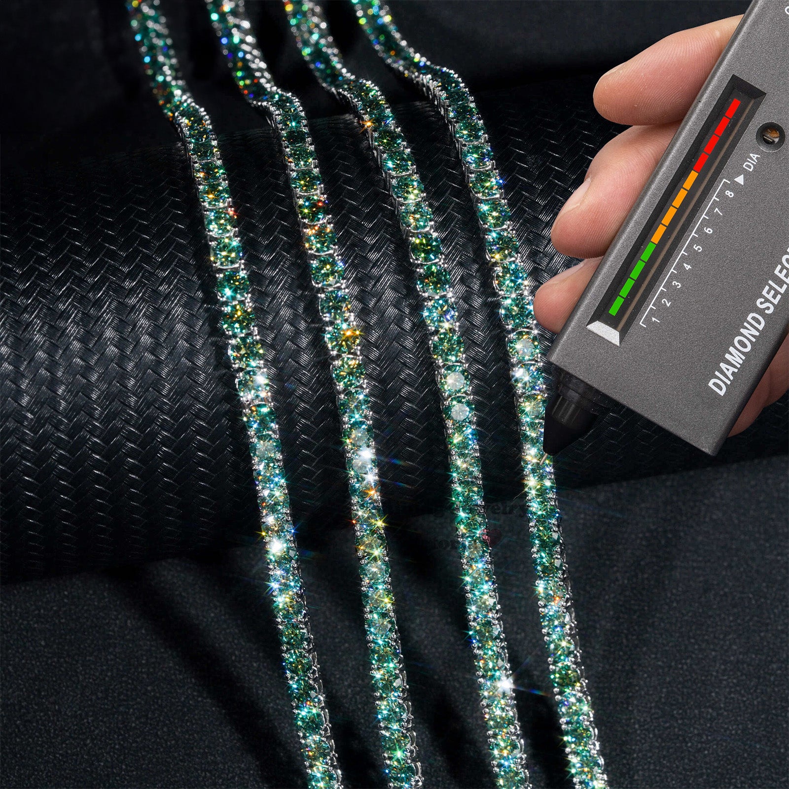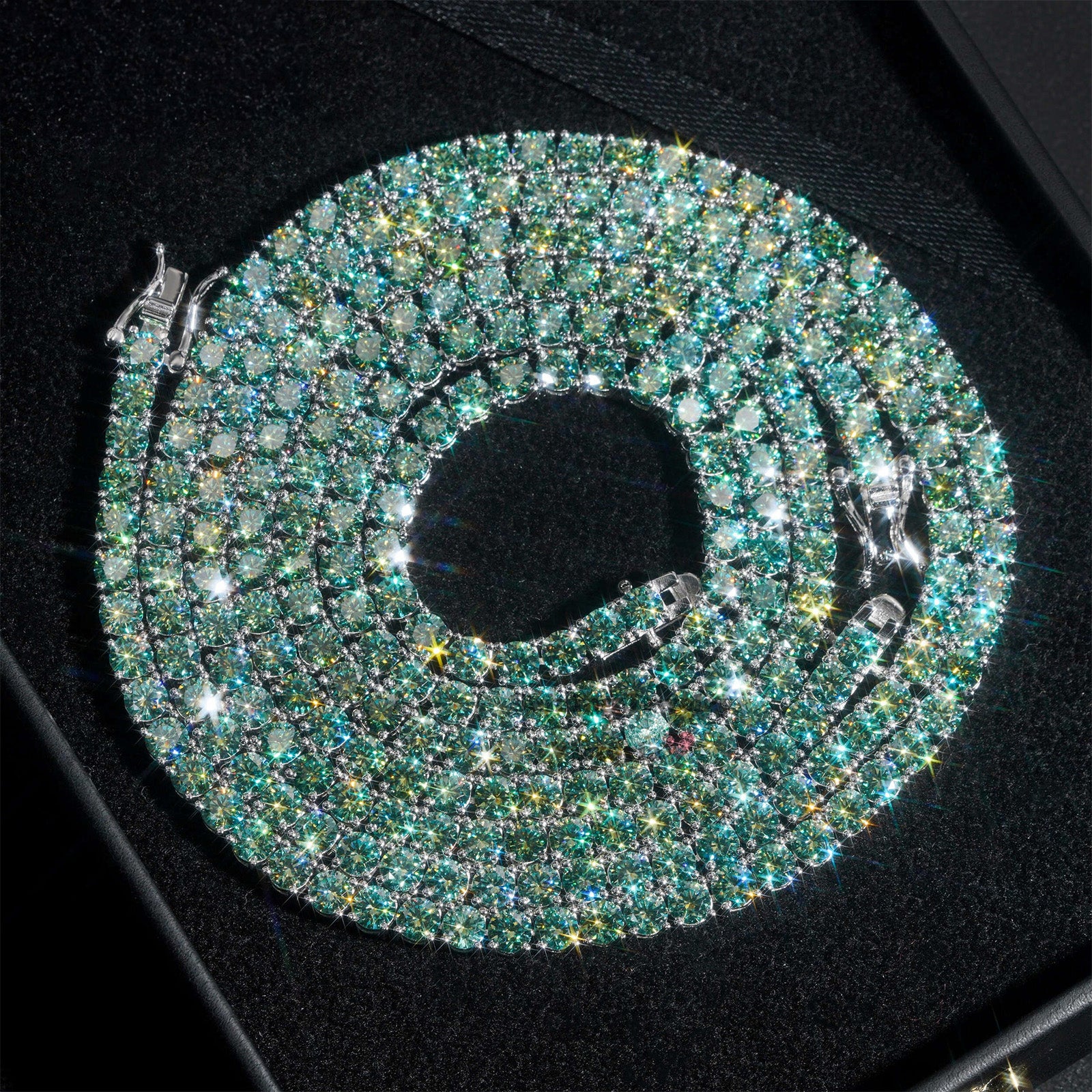GREEN MOISSANITE DIAMOND CLUSTER TENNIS CHAIN IN STERLING SILVER