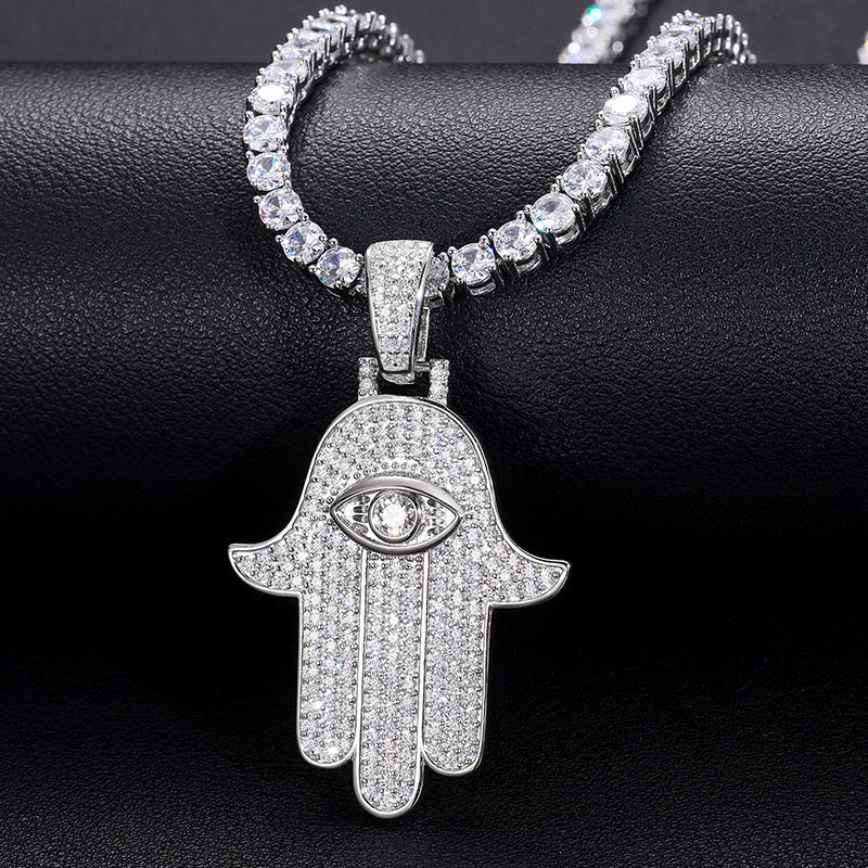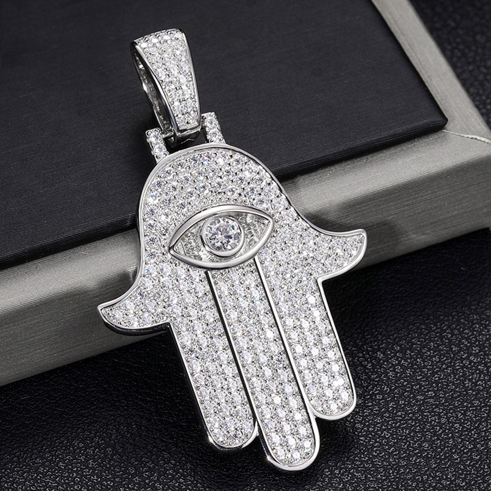 Embrace elegance and spiritual grace with our stunning Moissanite Diamond Hamsa Hand Pendant in Sterling Silver. 🖐️✨ Crafted with precision and adorned with shimmering Moissanite diamonds, this pendant radiates timeless beauty and symbolic significance. Perfect for everyday wear or special occasions, it's a stylish accessory that adds a touch of protection and sophistication to any ensemble. Elevate your jewelry collection with the enchanting allure of our Hamsa Hand Pendant.
