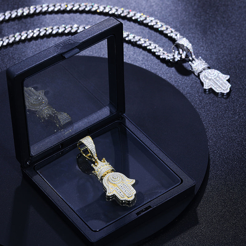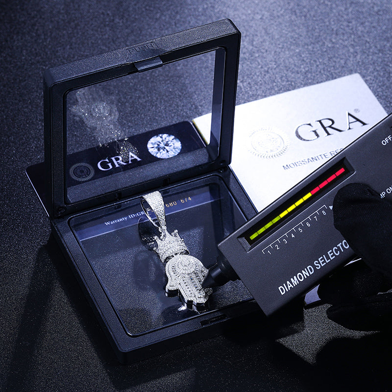 MOISSANITE DIAMOND HAMSA HAND PENDANT IN STERLING SILVER {STYLE 2}