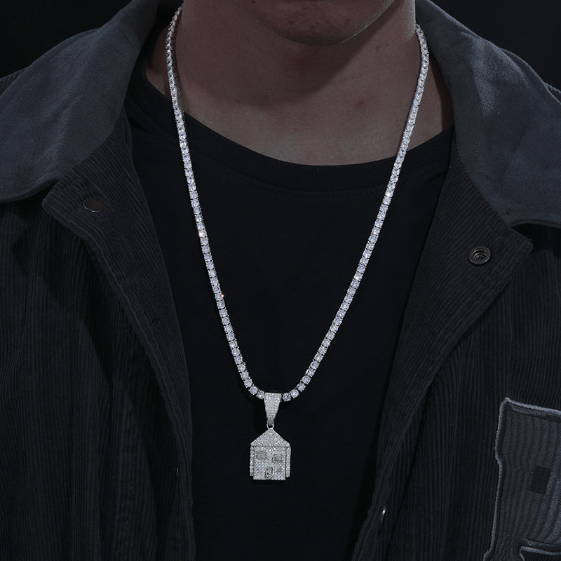 MOISSANITE DIAMOND HOUSE PENDANT IN STERLING SILVER