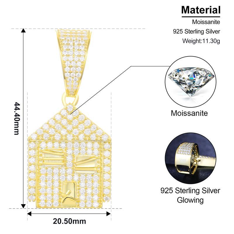 Introducing our Moissanite Diamond House Pendant in Sterling Silver. This charming pendant features a beautifully crafted house design, adorned with sparkling moissanite stones. Set in high-quality sterling silver, it blends the warmth of home with the brilliance of moissanite. Perfect for those who appreciate unique and meaningful jewelry, this pendant adds a touch of homely charm and elegance to any outfit. Ideal for both everyday wear and special occasions, it is designed to captivate and inspire. 🏡💎✨